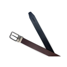 Cinturón para hombre reversible, con un lado en cuero grabado con línea en la mitad del cinturón creadas mediante grabado láser y el otro en cuero liso, perfecto para combinar con distintos estilos —desde atuendos formales hasta looks casuales. Su hebilla metálica reversible permite un cambio rápido de lado, y su ancho de 3 cm aproximadamente ofrece un ajuste cómodo y elegante.
