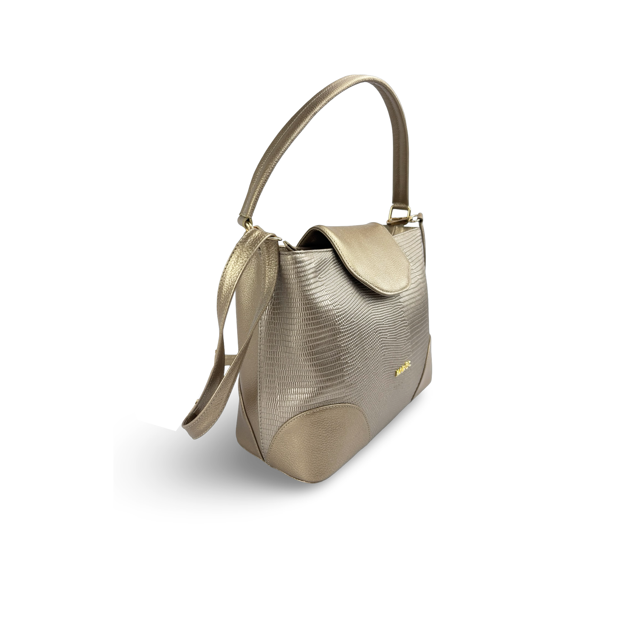 Diseño versátil y elegante, ideal para días de oficina o eventos casuales. Puede usarse al hombro o cruzado, e incorpora aplique metálico dorado con el logo Marón en la parte frontal. Cuenta con doble compartimento principal, bolsillos internos funcionales y cierre seguro con solapa magnética y cremallera. Fabricado en Colombia en cuero vacuno grabado y liso, con forro en poliéster y herrajes resistentes.
