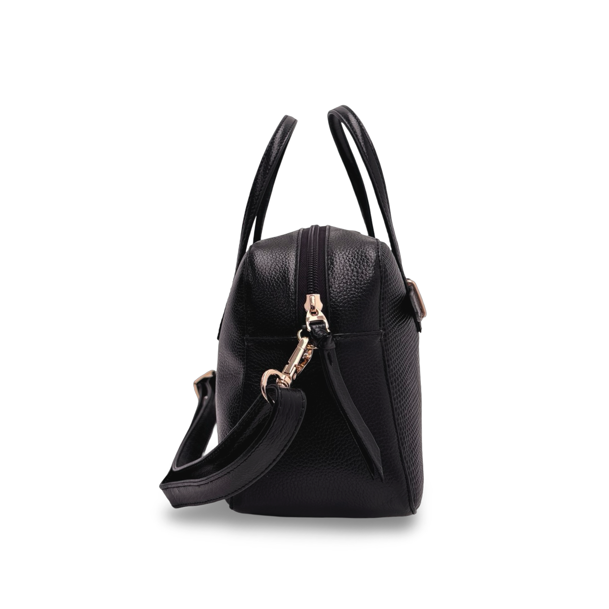 Tipo: bolso tipo baúl en cuero con detalle de correa frontal