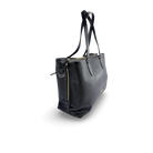 Funcionalidad y estilo en un solo accesorio. Este bolso cuenta con tres compartimentos amplios, un bolsillo interno con cierre y un bolsillo abierto ideal para documentos o celular. Incluye cuatro zapatas en la base para protegerlo y un mosquetón interno para llaves, combinando practicidad con elegancia. Fabricado en Colombia en cuero vacuno grabado liso y metalizado, con forro en poliéster y herrajes duraderos. Dimensiones aproximadas: Alto 25 cm x Ancho 30 cm x Fondo 13 cm x Asas 30 cm.