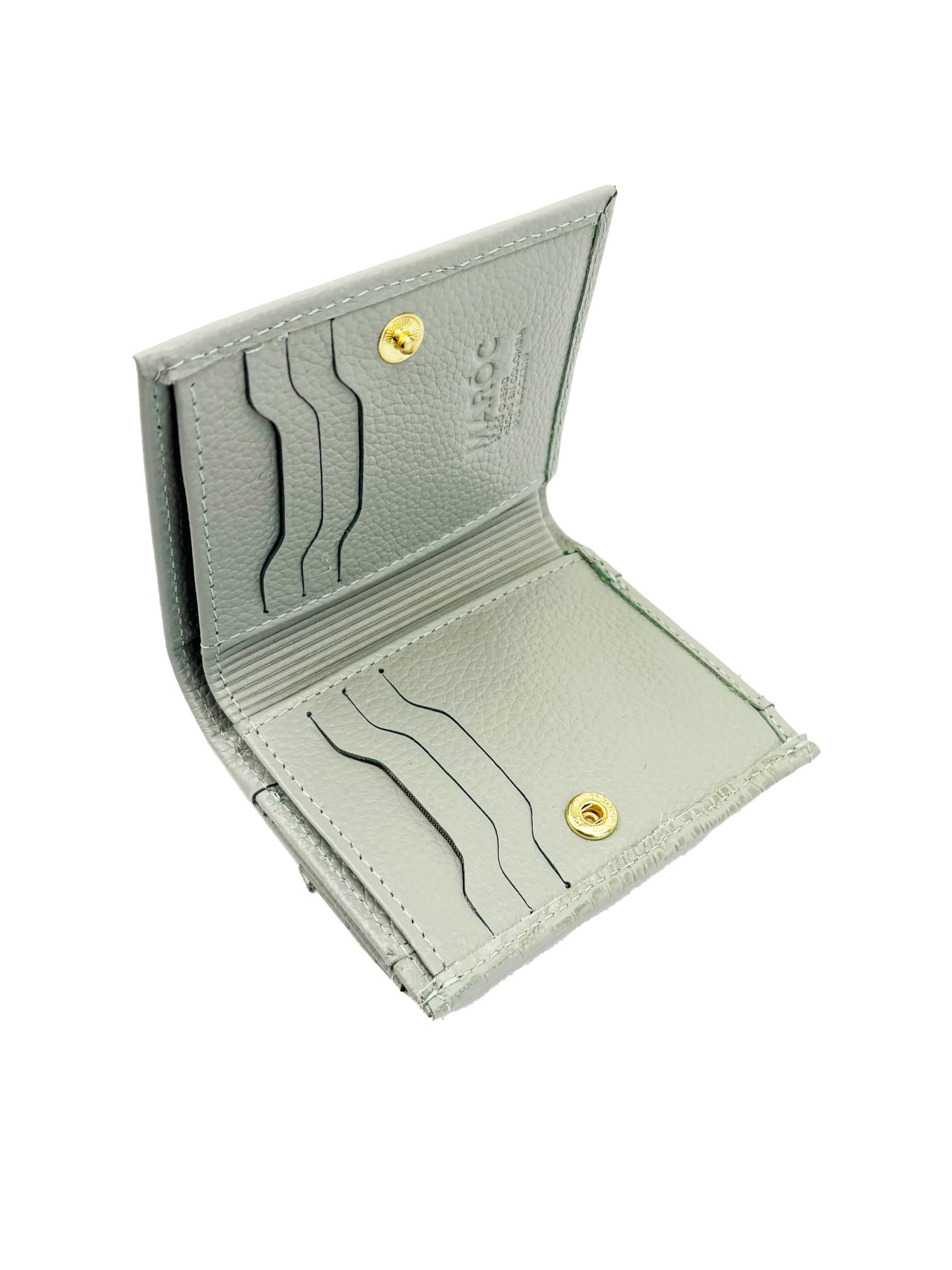 Billetera práctica para mujer, diseñada para combinar organización y estilo en un formato compacto. Con dimensiones aproximadas de 10 x 8 x 3 cm, ofrece dos cuerpos con compartimentos para billetes, ocho espacios para tarjetas y un monedero con solapa para monedas. Su cierre con broche garantiza seguridad, mientras que el sistema Bloqueo R-FID protege tus documentos y tarjetas de escaneos no autorizados. Ideal para el día a día con un toque elegante y funcional.