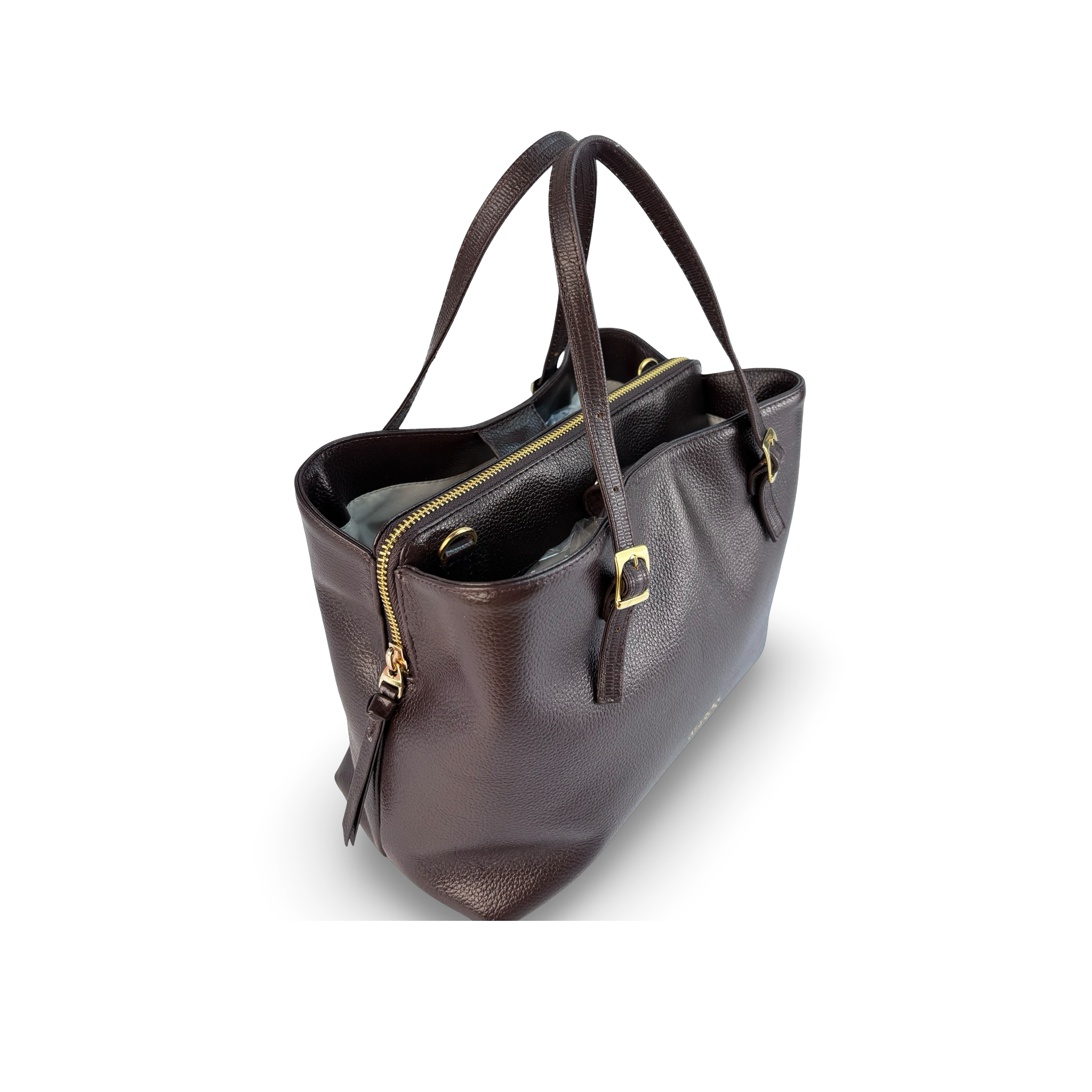 Bolso tipo bucket para mujer, práctico y moderno, ideal para quienes buscan estilo y funcionalidad en un solo diseño. Su estructura cuenta con tres compartimentos principales que permiten mantener todo en orden, además de bolsillos internos para tus objetos personales. Puedes llevarlo al hombro o cruzado, adaptándolo fácilmente a tu look diario.Te va a encantar por su diseño versátil, su acabado en cuero grabado y su toque contemporáneo que eleva cualquier outfit. Dimensiones aproximadas: Alto 20 cm x Ancho 25 cm x Fondo 10 cm x Asas 10 cm.