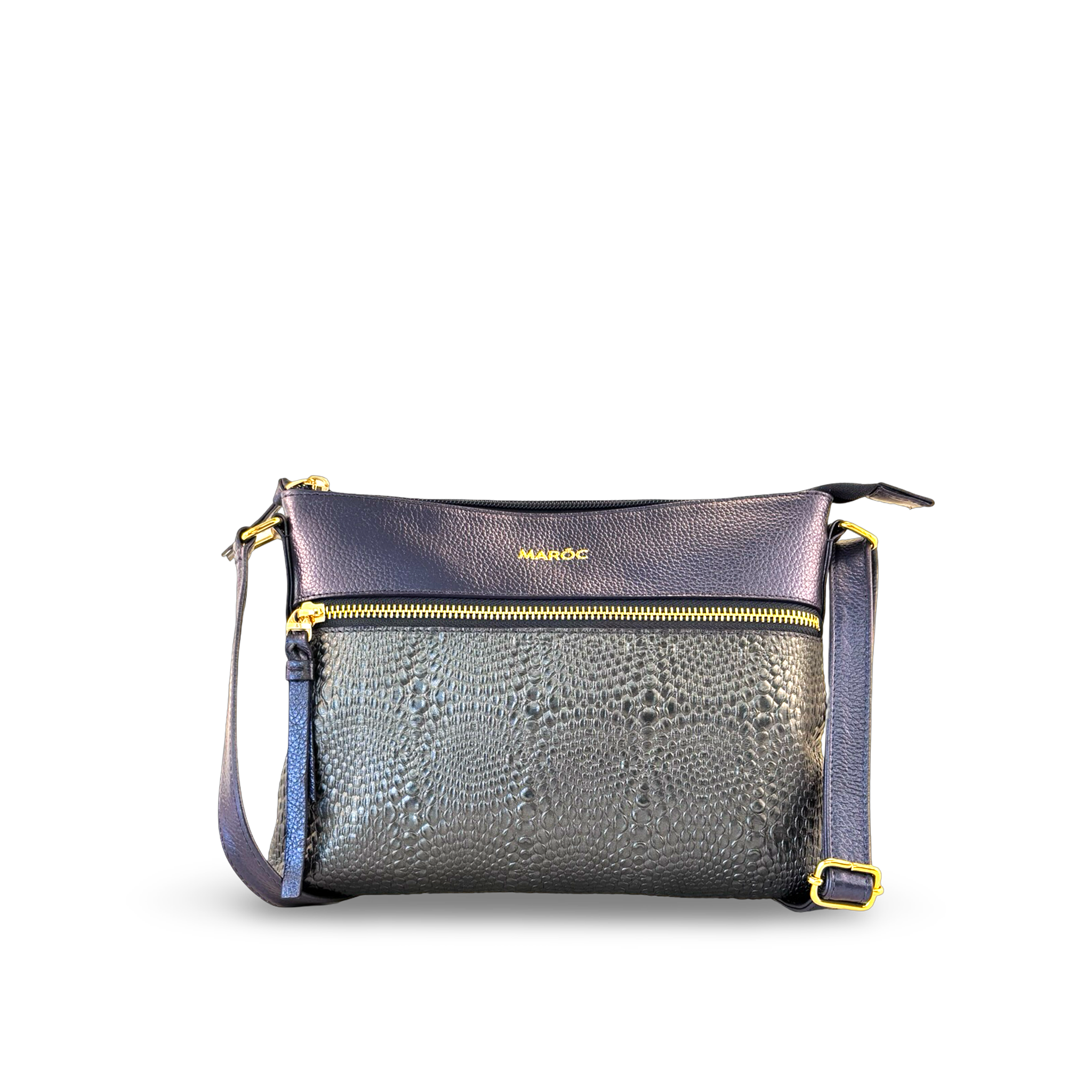 Diseñado para acompañarte en tu día a día, cuenta con un compartimento principal espacioso, un bolsillo interno con cierre de cremallera ideal para tu celular o tarjetero, y dos compartimentos externos con cremalleras —uno frontal y otro posterior— que te permiten mantener tus pertenencias siempre organizadas. Su correa con hebilla graduable ofrece total comodidad al llevarlo cruzado.