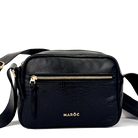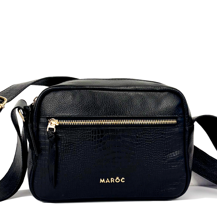Complementa tus looks con el bolso manos libres Maroc, una pieza moderna y sofisticada elaborada en 100% cuero vacuno grabado, metalizado y liso. Su diseño compacto con aplique metálico dorado frontal refleja elegancia y estilo urbano. Cuenta con varios compartimentos para mantener todo en orden: un bolsillo interno con cremallera, otro abierto para celular o accesorios y un bolsillo externo funcional. Incluye correa ancha ajustable y portallaves interno con mosquetón, ideal para llevarlo cruzado o al hombro. Dimensiones aproximadas: Alto 16 cm x Ancho 23 cm x Fondo 9 cm. Hecho artesanalmente en Colombia con herrajes de alta calidad.