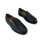 Mocasín para hombre de cuero vacuno liso mate con antifaz en el empeine y tacón bajo de 2.5 cm aproximadamente, diseñado para un look elegante y cómodo. Su horma normal punta semiredonda y cierre slip-on permiten un calce fácil y práctico, ideal para el día a día o eventos casuales. Suela de caucho para mayor durabilidad y agarre.