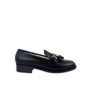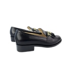 Mocasín para mujer en cuero vacuno liso con elegantes borlas decorativas en la parte frontal. Su diseño slip-on con punta almendrada y tacón bajo de 3 cm brinda comodidad y sofisticación en cada paso, ideal para looks formales o atemporales con estilo. Hecho en Colombia con 100% cuero de alta calidad, forro en cuero y suela en caucho que garantiza resistencia y confort duradero.