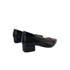 Tacón para mujer en cuero vacuno troquelado, elegante y versátil para toda ocasión. Diseño slip-on de punta semipuntuda y tacón cómodo de 3.5 cm aproximadamente que brinda altura con estabilidad. Elaborado en Colombia con capellada 100% cuero y forro en cuero, suela en caucho antideslizante. Perfecto para looks sofisticados de día o de noche.