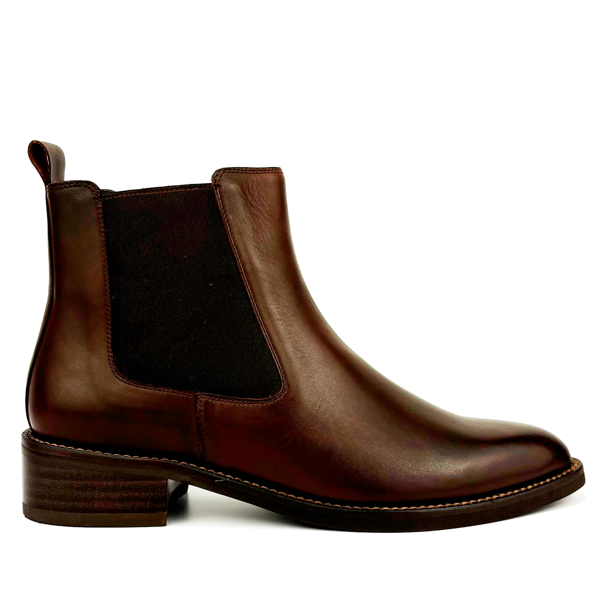 Botín mujer, confeccionado en cuero vacío; terminación cuero liso natural y elástico; tacón bajo; detalle elástico a los costados para un mejor ajuste, cremallera interna; marca maroc