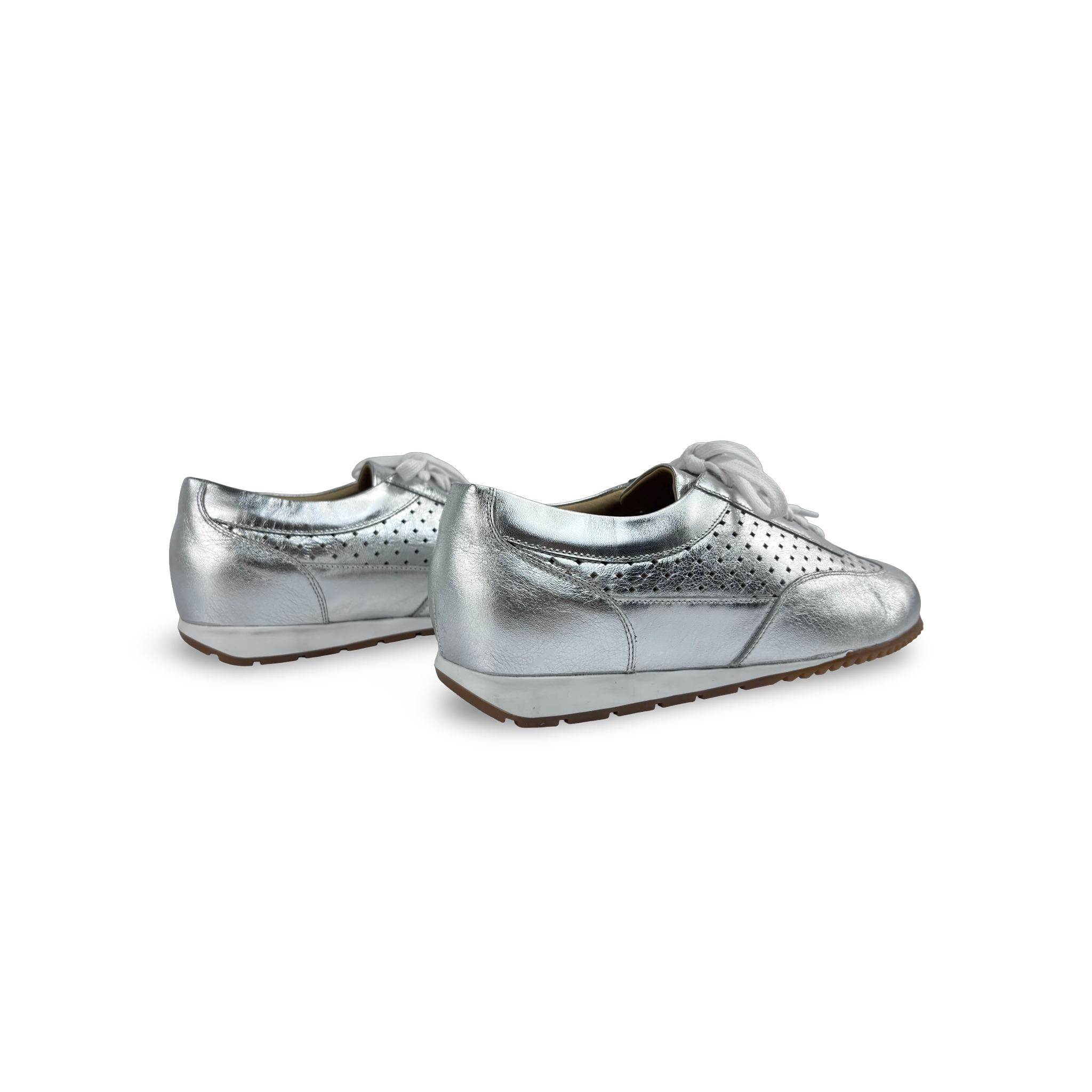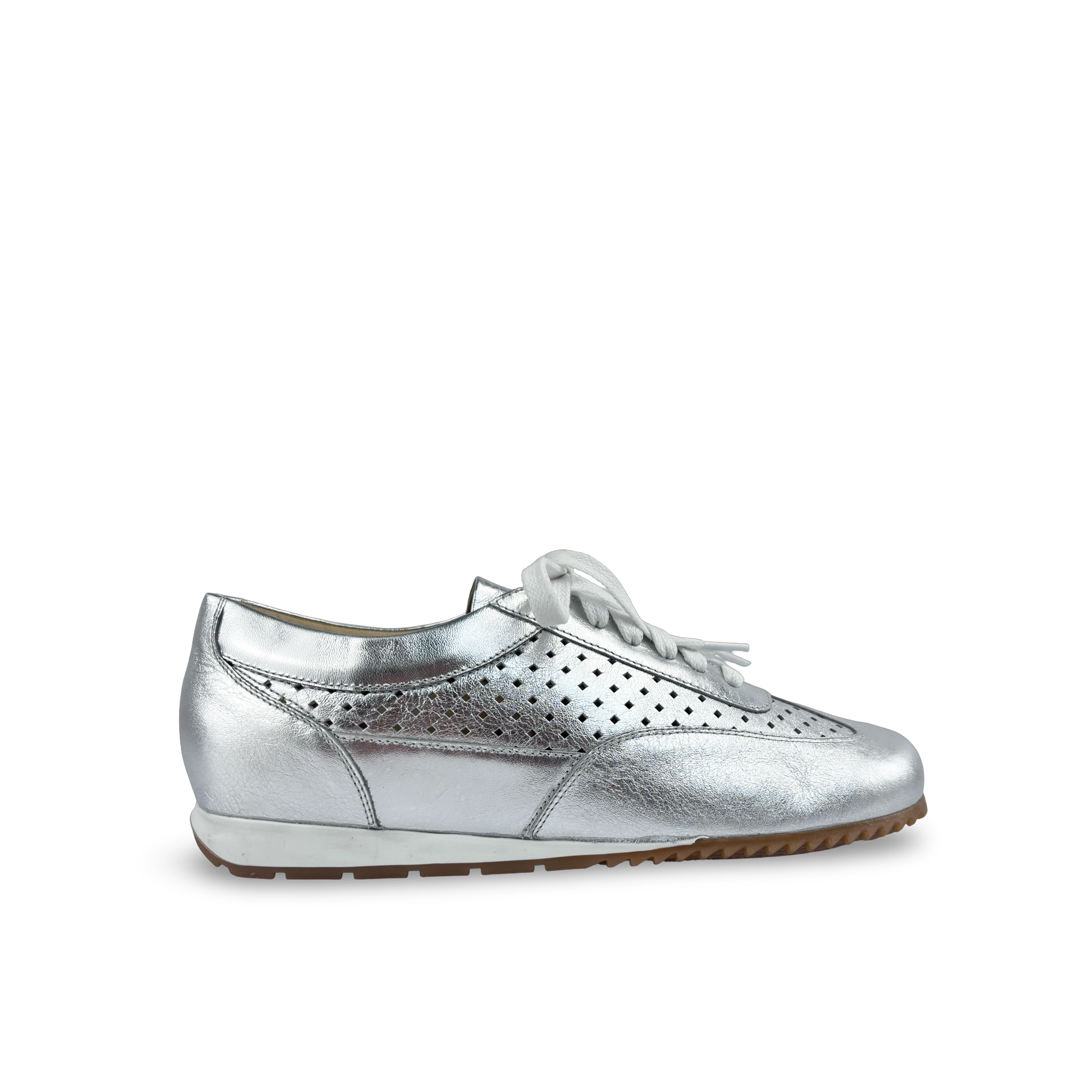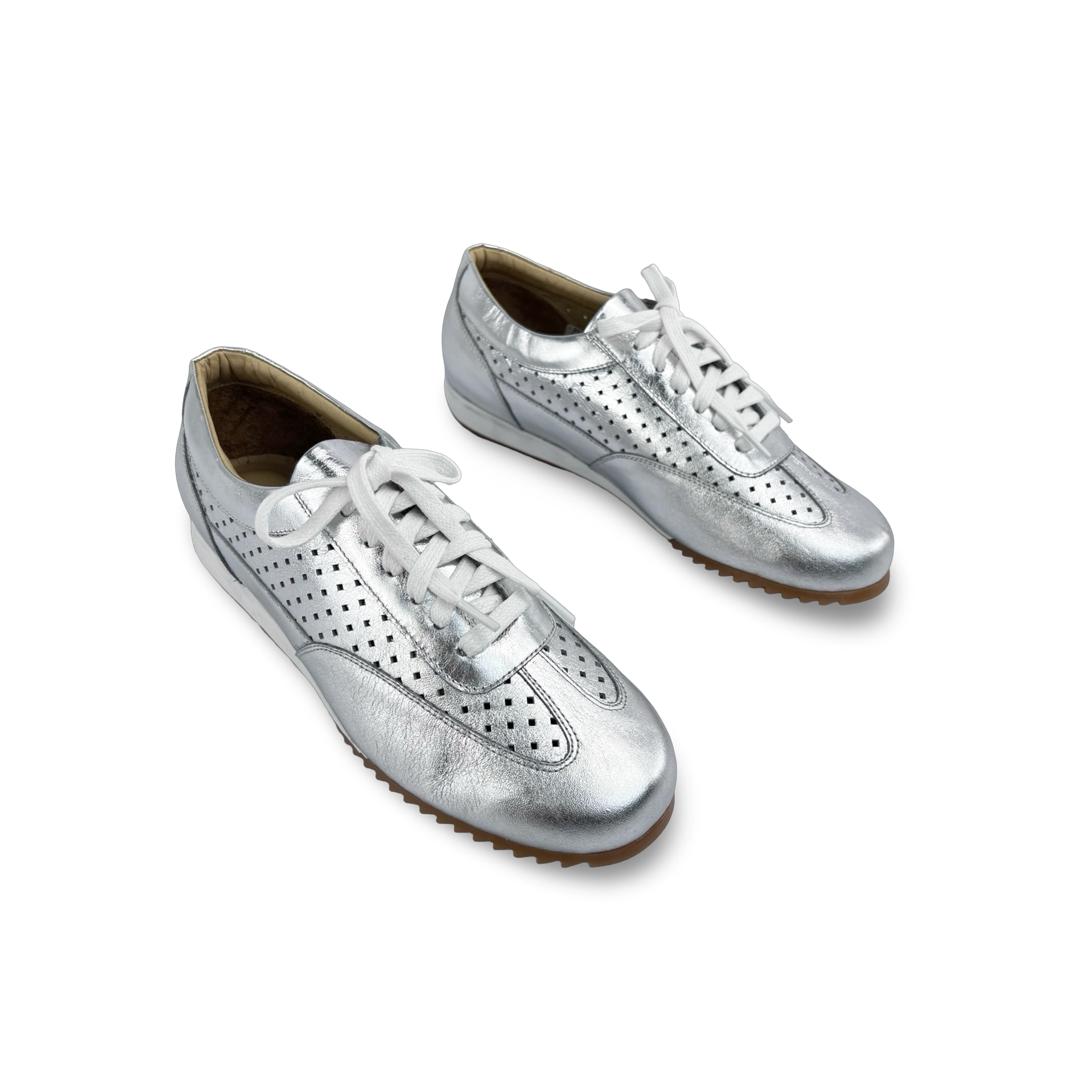 - Tipo: Tenis para mujer con cordones en cuero y detalles troquelados en la capellada