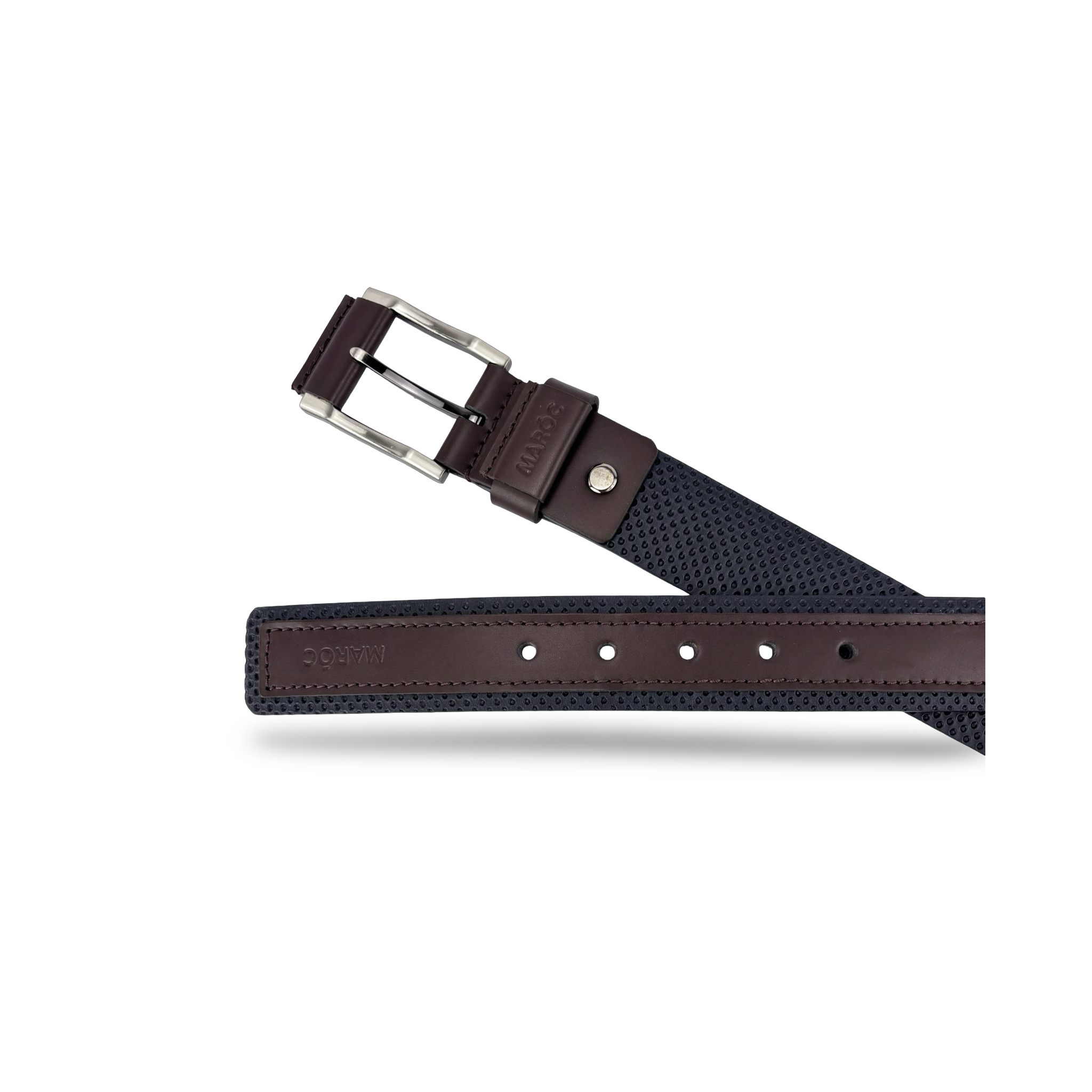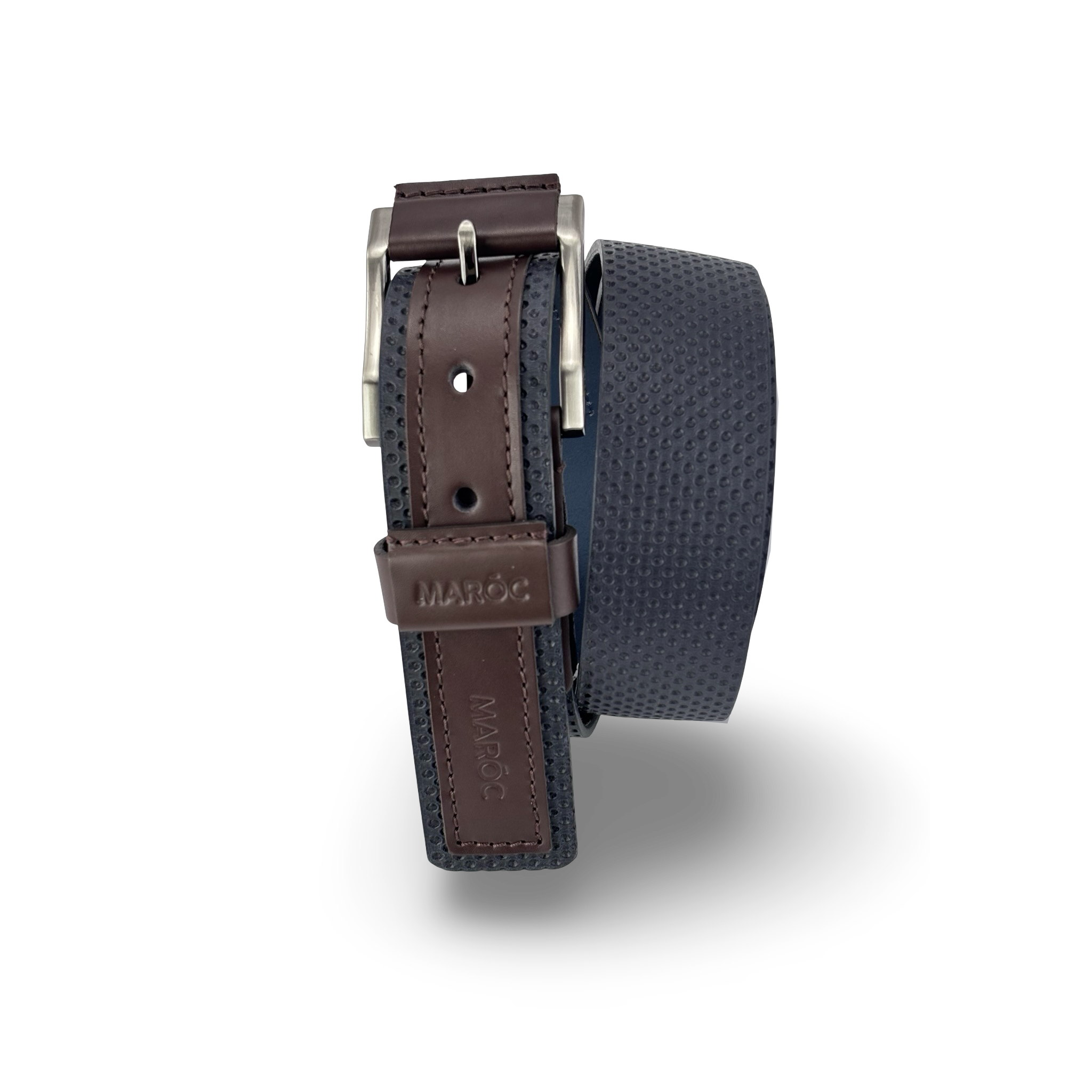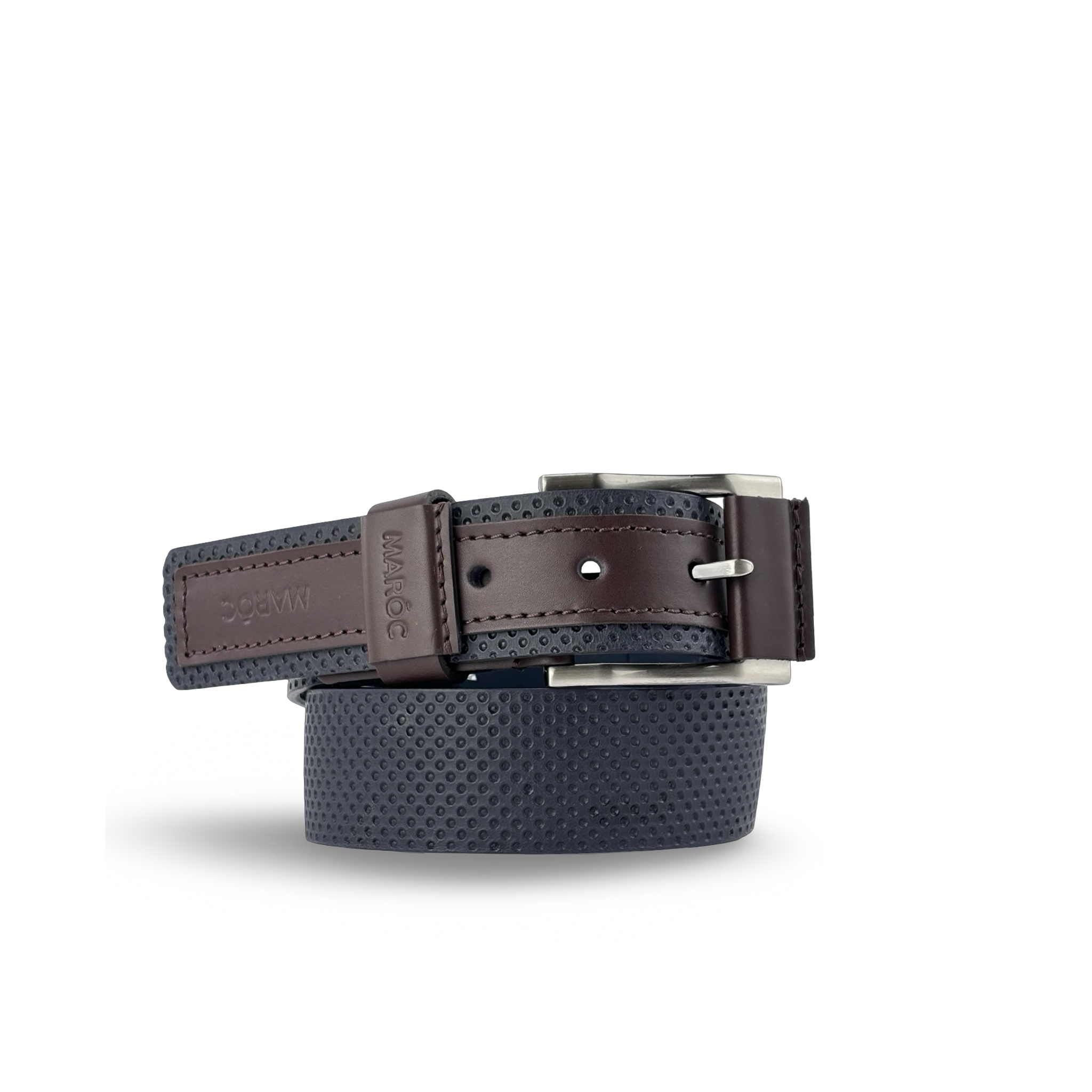 CINTURÓN EN CUERO PARA HOMBRE | NOBUK AZUL Y CHOCOLATE