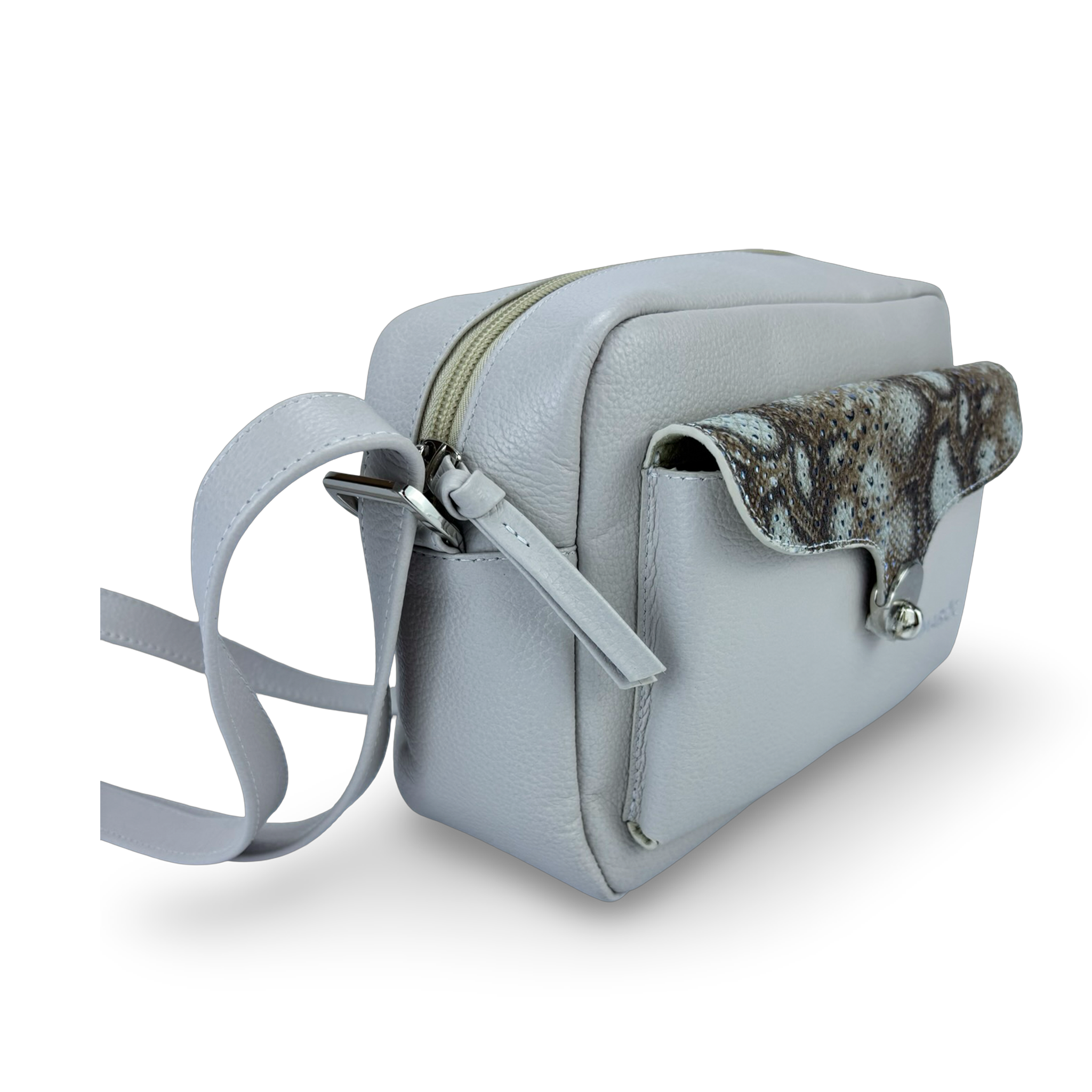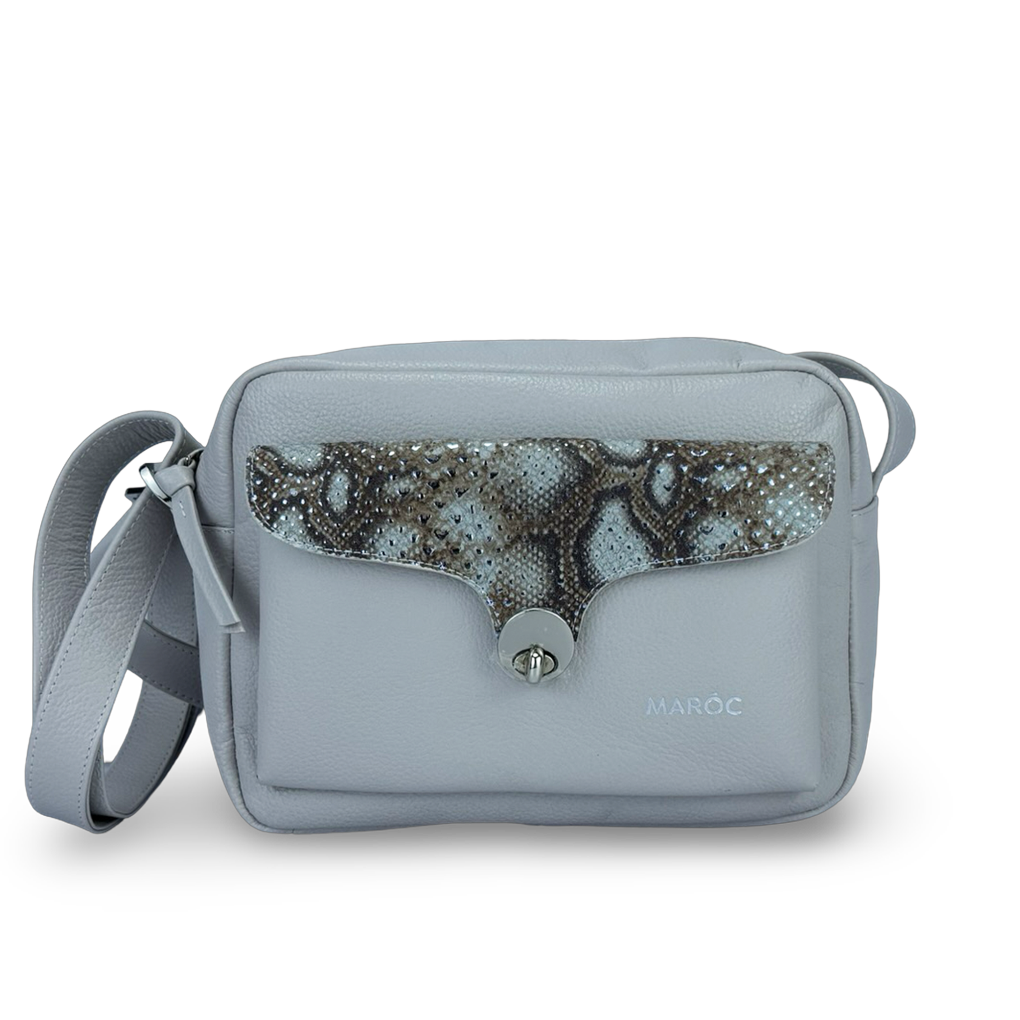 El bolso manos libres para mujer con solapa en cuero grabado de Maroc combina diseño clásico y practicidad moderna. Fabricado en 100% cuero vacuno grabado y liso, ofrece una estructura compacta pero funcional con varios compartimentos internos y externos para mantener tus esenciales organizados.