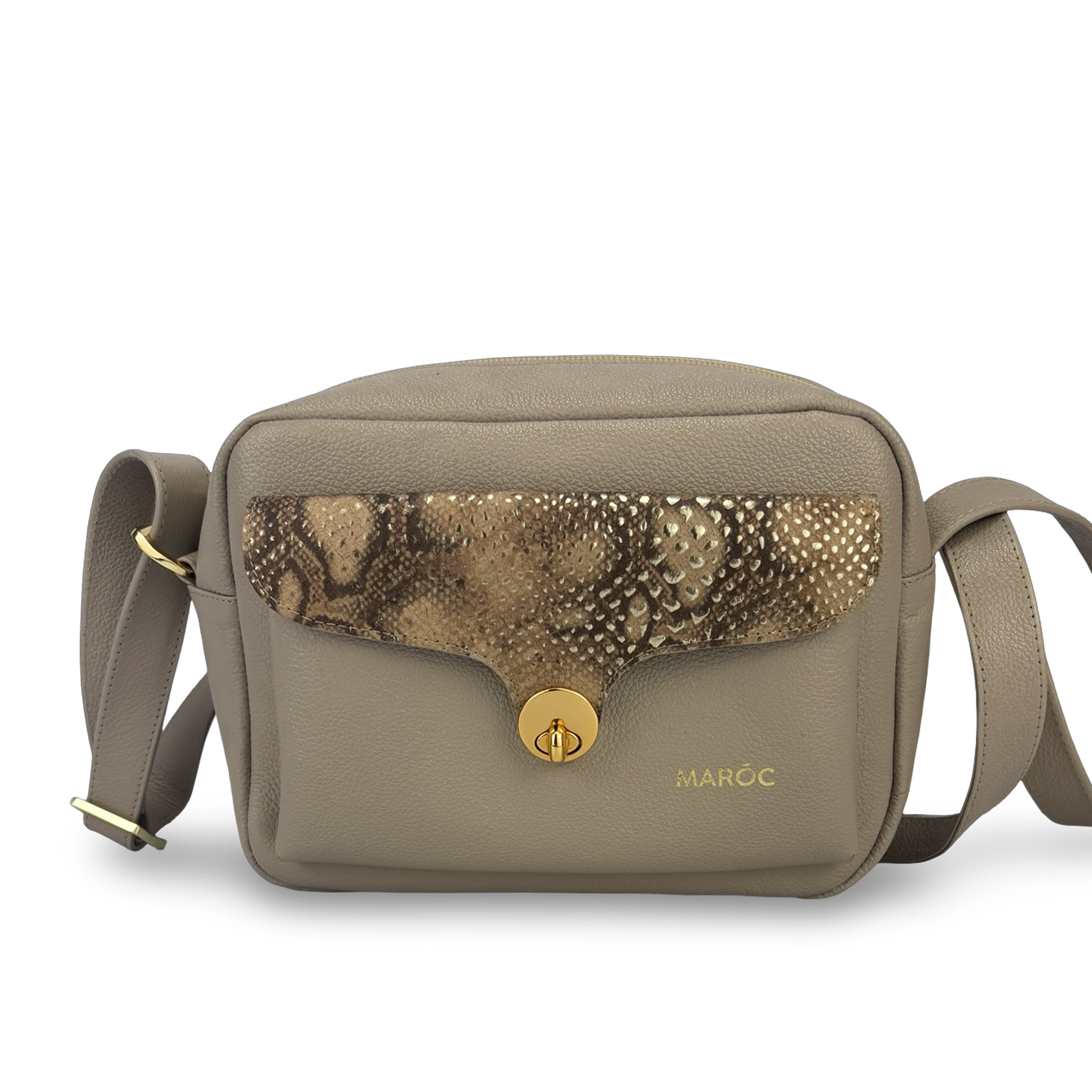 El bolso manos libres para mujer con solapa en cuero grabado de Maroc combina diseño clásico y practicidad moderna. Fabricado en 100% cuero vacuno grabado y liso, ofrece una estructura compacta pero funcional con varios compartimentos internos y externos para mantener tus esenciales organizados.