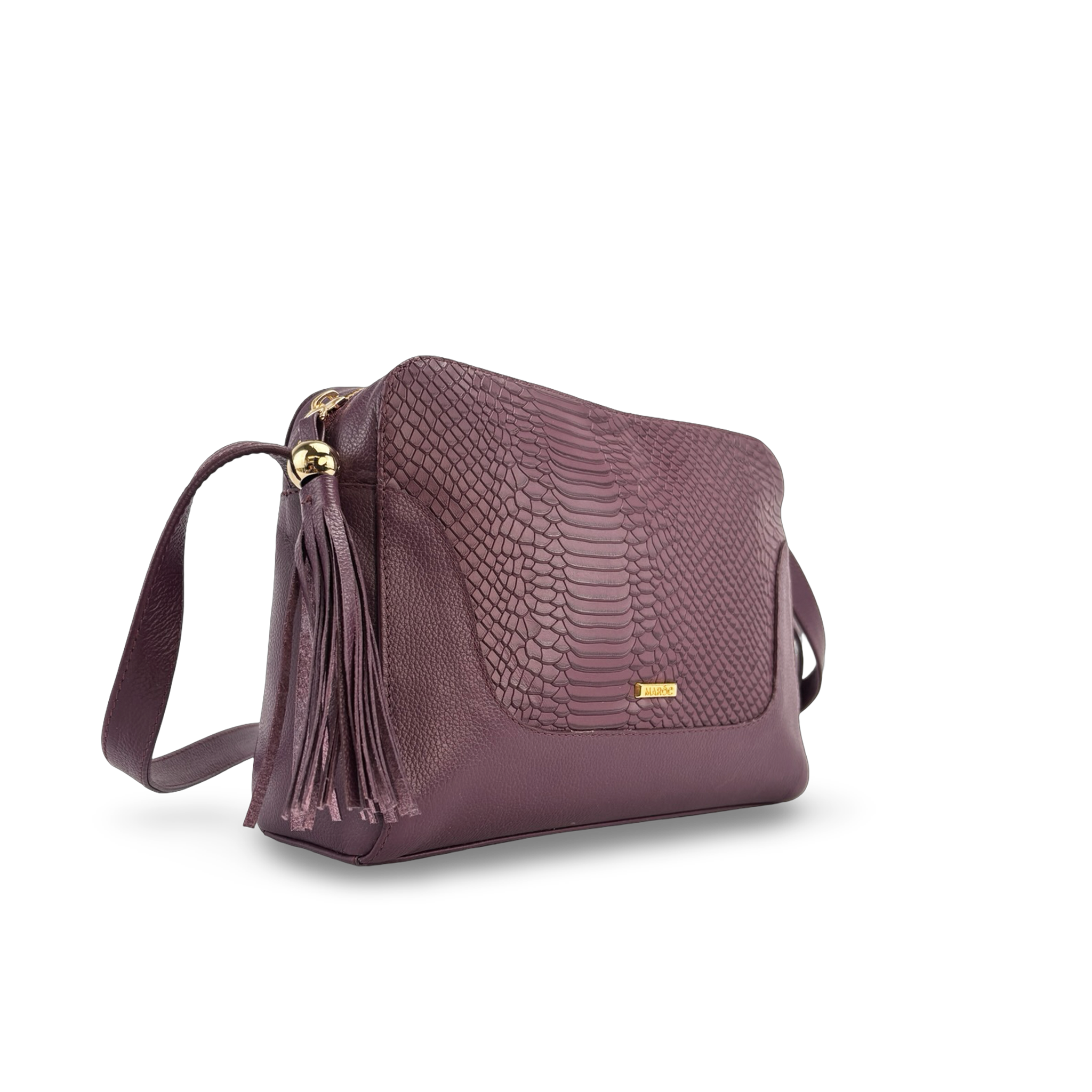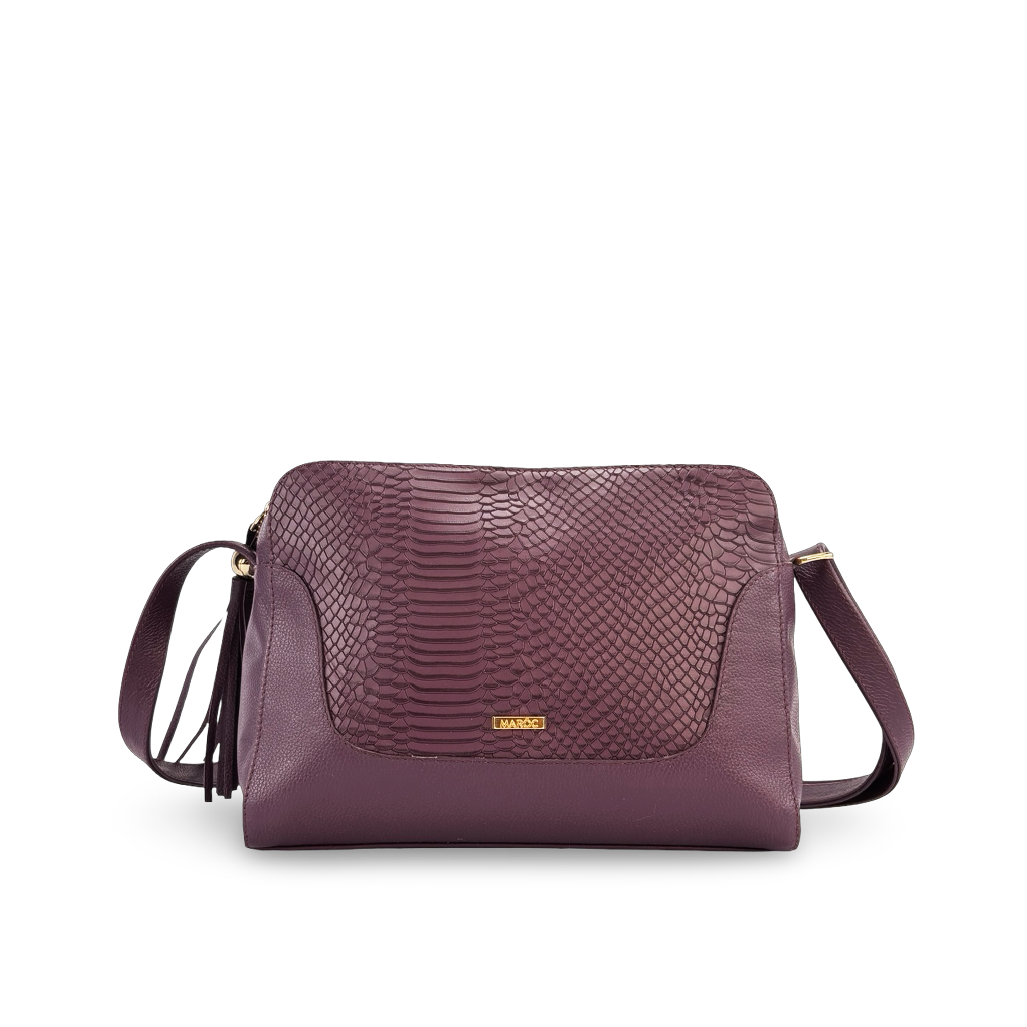 Bolso manos libres en 100% cuero vacuno, combinación de texturas grabado y liso, ideal para acompañar tus looks diarios con un toque sofisticado. Su diseño incluye aplique metálico dorado con logo MAROC y borla decorativa en el slider, aportando elegancia y distinción. Cuenta con correa graduable, amplio compartimento principal y bolsillos con cremallera internos y externos para mayor organización. Dimensiones aproximadas: Alto 19cm x Ancho 24.5cm x Fondo 8cm.