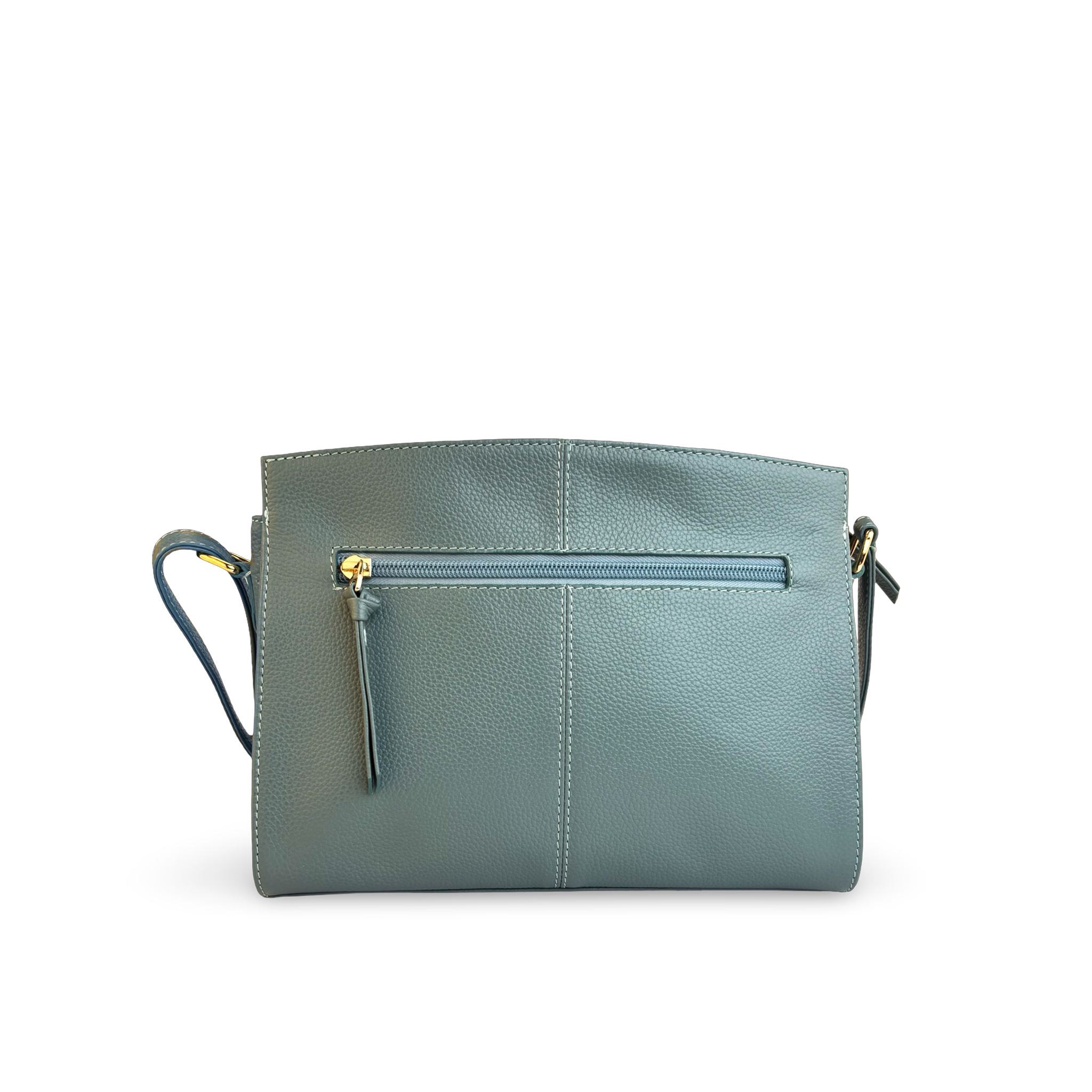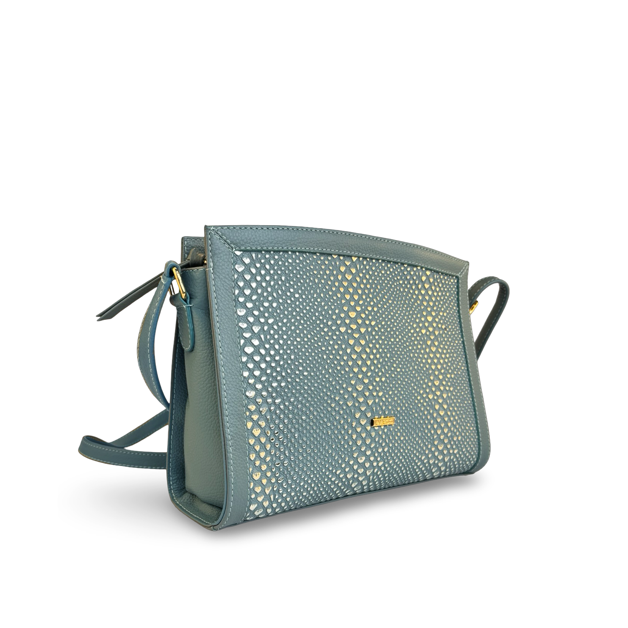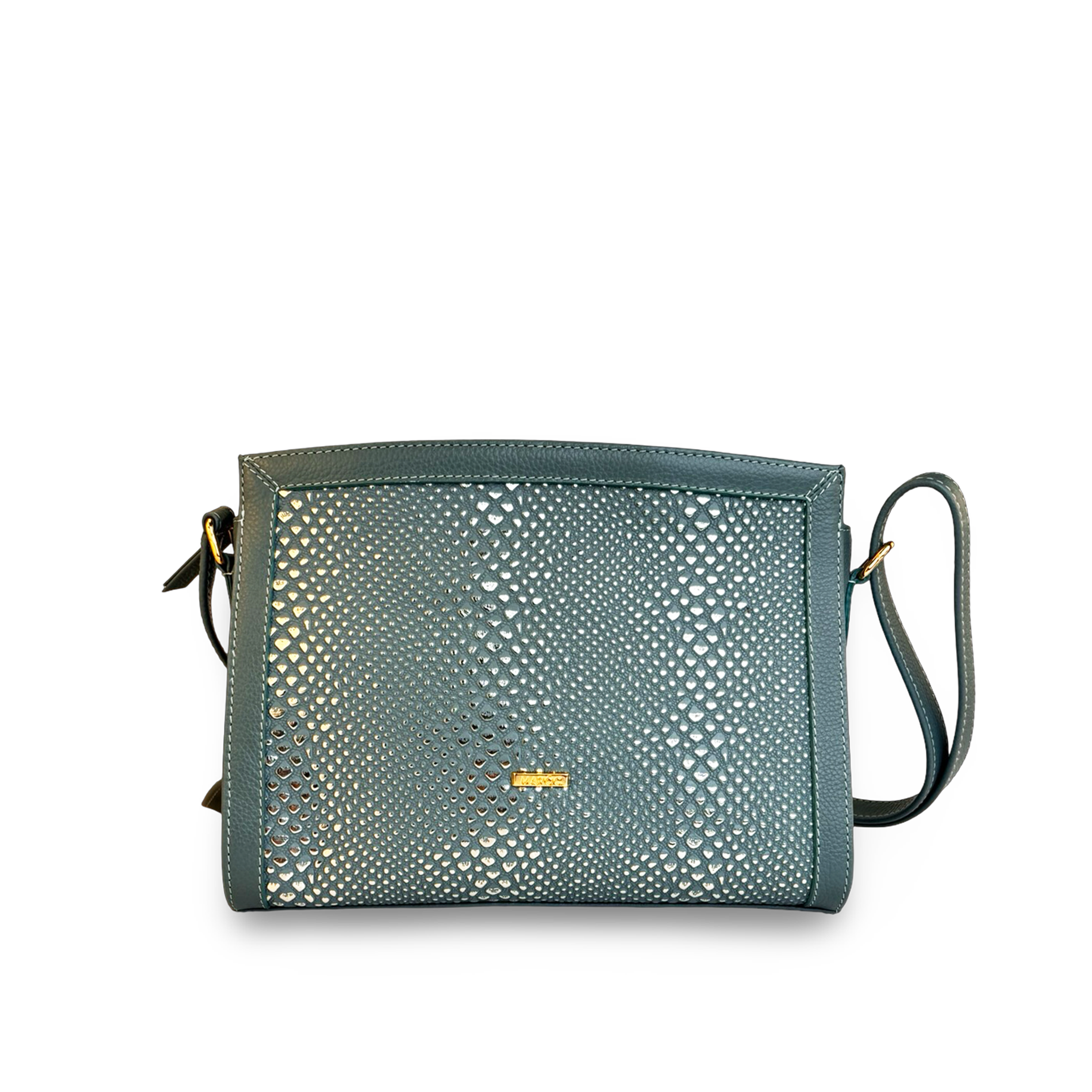 Bolso manos libres para mujer en diseño texturizado elaborado en 100% cuero vacuno grabado y liso, con aplique metálico del logo Maroc en la parte frontal. Cuenta con un compartimento principal, un bolsillo interno y un compartimento externo con cremallera. Incluye correa ajustable para cruzar, combinando estilo y funcionalidad.