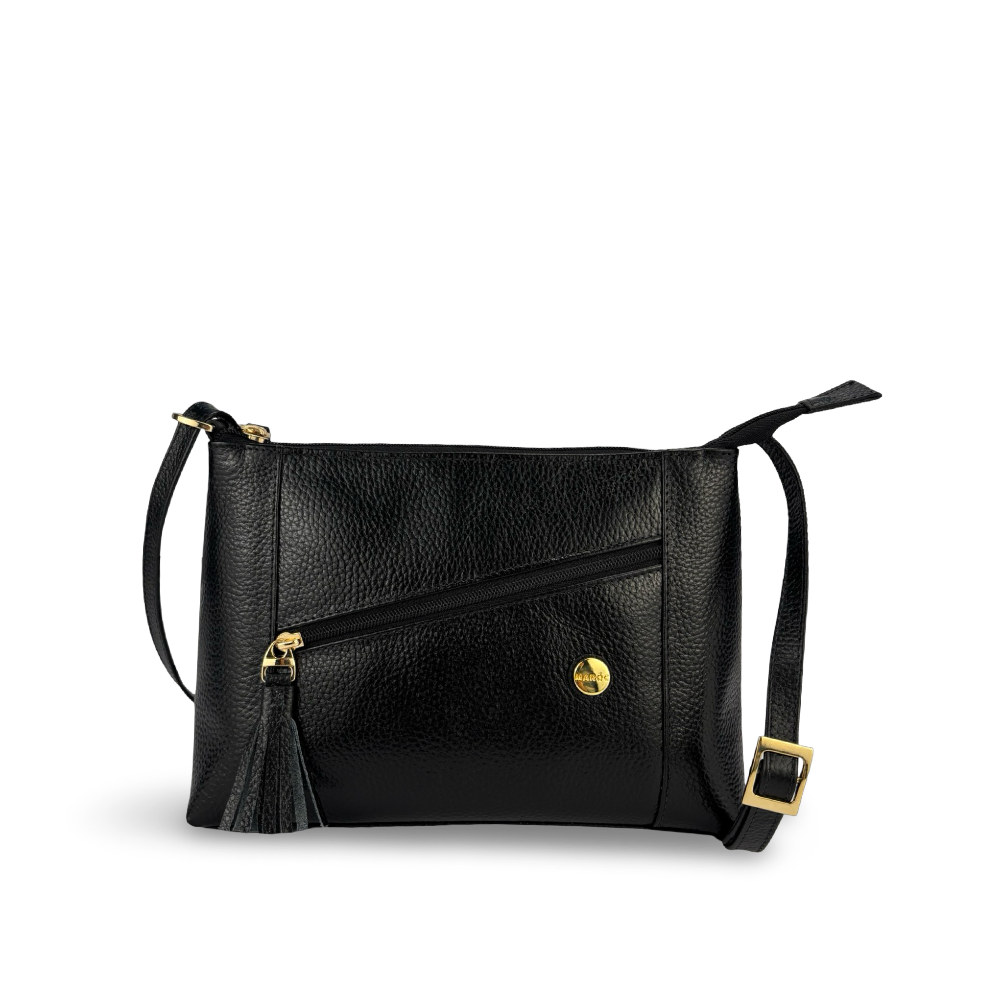 El bolso manos libres pequeño de Maroc es el complemento ideal para quienes buscan estilo, practicidad y elegancia en un solo accesorio. Su diseño compacto elaborado en 100% cuero vacuno liso destaca por el aplique metálico dorado con el logo de la marca y una borla decorativa que le aporta un toque sofisticado.