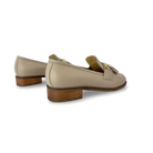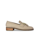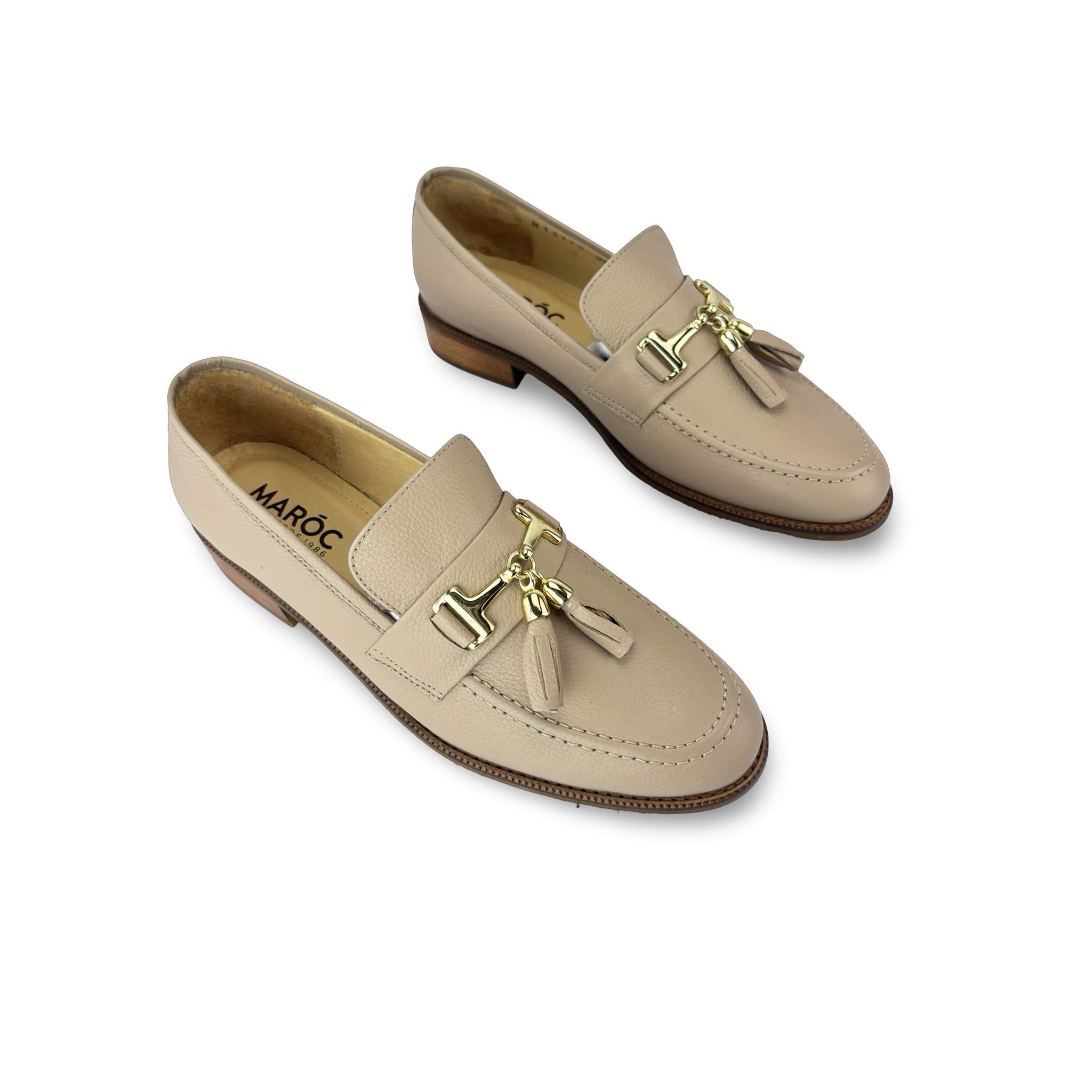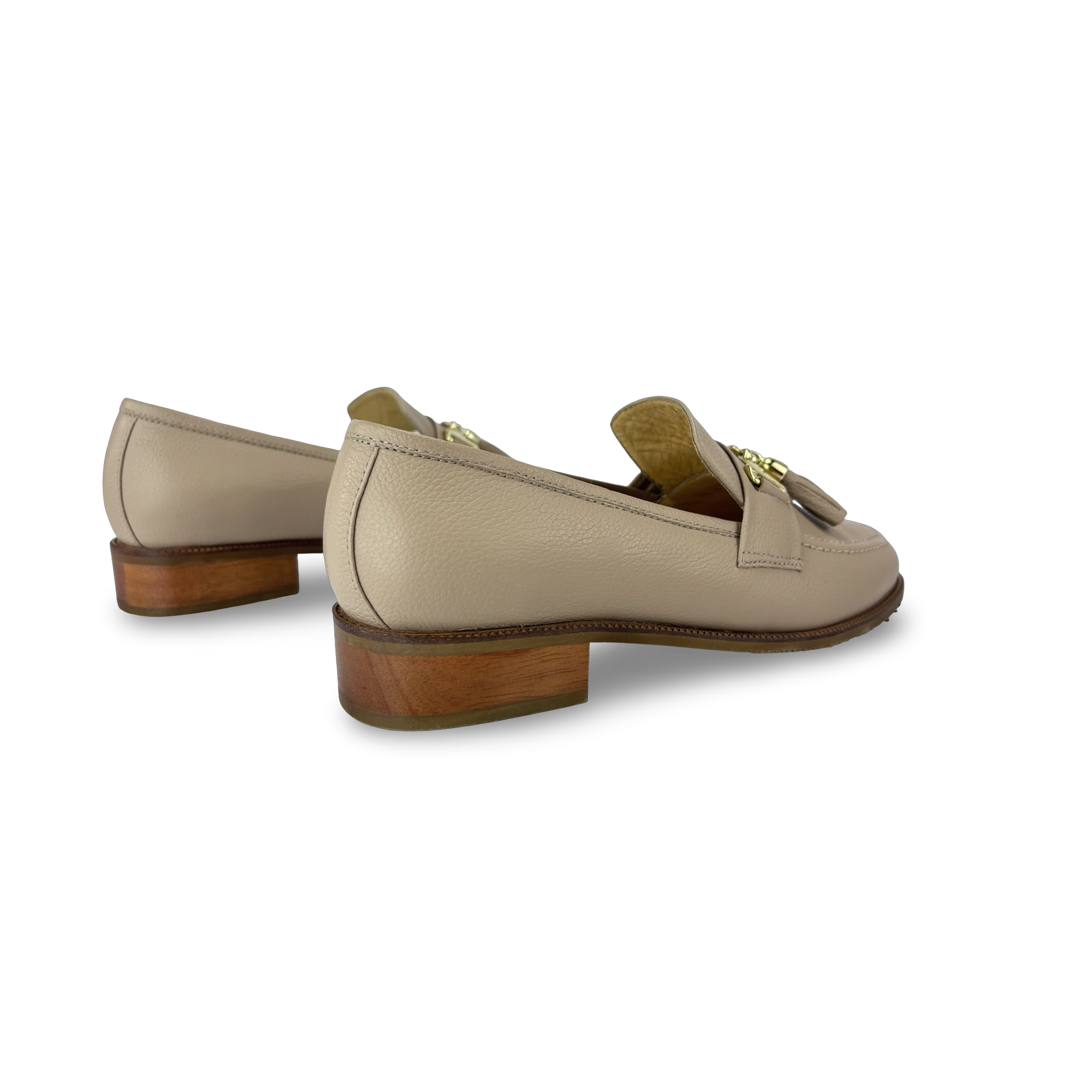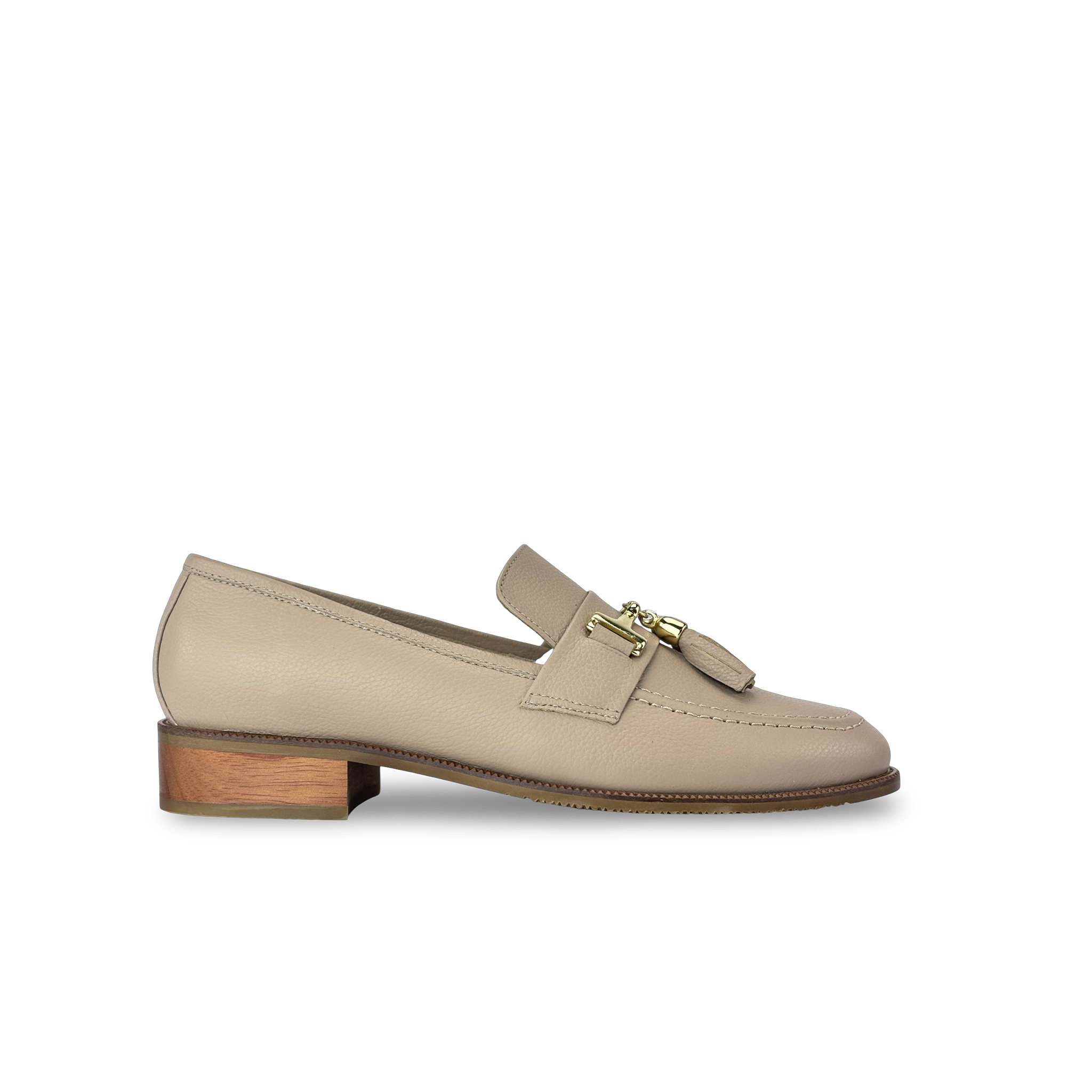Mocasín para mujer en cuero vacuno liso con elegantes borlas decorativas en la parte frontal. Su diseño slip-on con punta almendrada y tacón bajo de 3 cm brinda comodidad y sofisticación en cada paso, ideal para looks formales o atemporales con estilo. Hecho en Colombia con 100% cuero de alta calidad, forro en cuero y suela en caucho que garantiza resistencia y confort duradero.