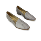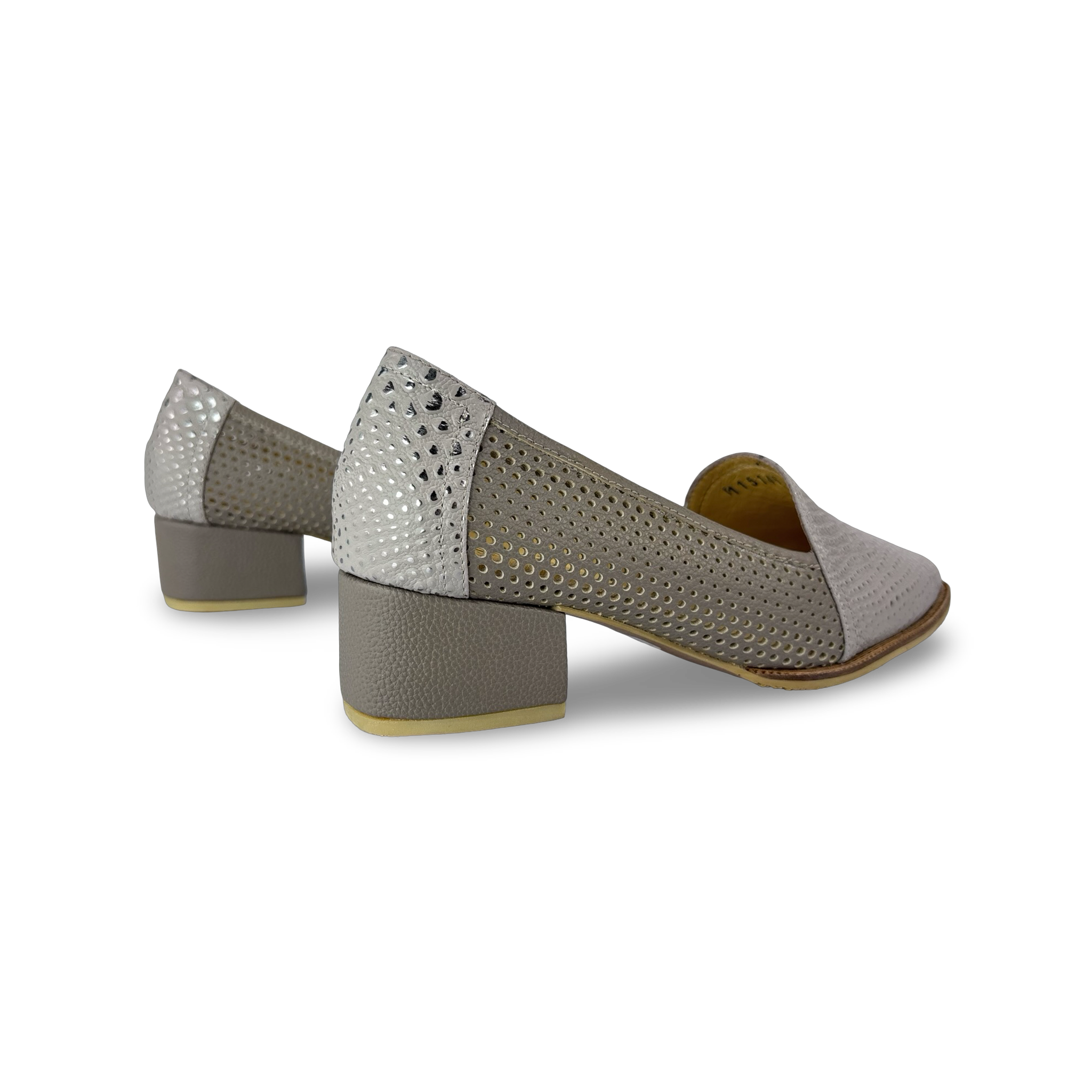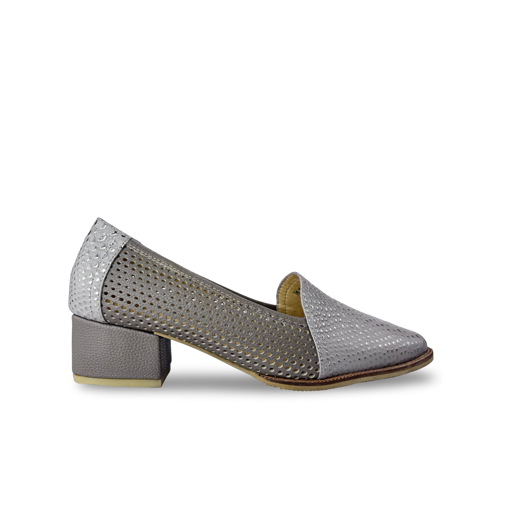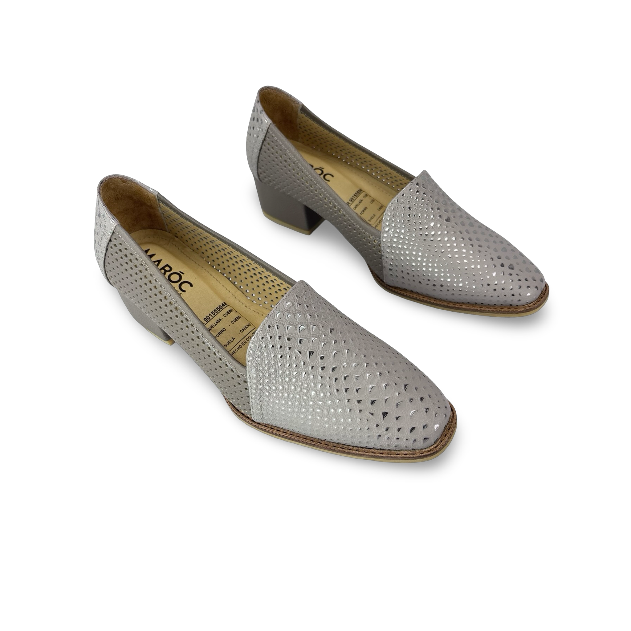 Los mocasines para mujer de Maroc combinan sofisticación y confort en un diseño ejecutivo Fabricados en 100% cuero vacuno grabado, metalizado y troquelado, destacan por su textura única y su elegante acabado brillante. Su tacón de 4 cm aporta una altura ideal para estilizar la figura sin perder comodidad, mientras que su punta fina y cierre slip-on garantizan un calce práctico y moderno. Perfectos para looks de oficina o salidas casuales, estos mocasines colombianos elevan cualquier outfit con su toque artesanal y refinado. Dimensiones aprox.: Tacón de 4 cm de alto.