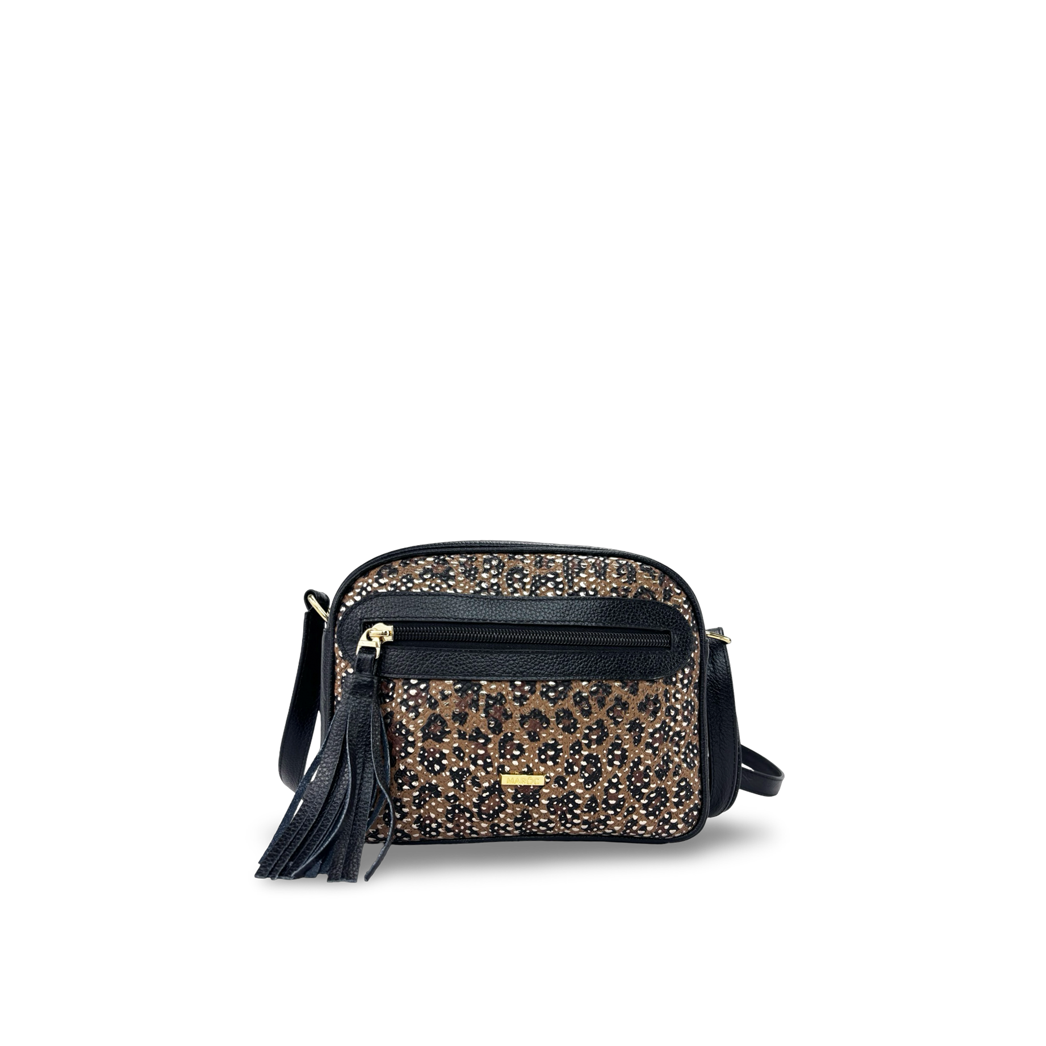 Este práctico bolso manos libres está elaborado en 100% cuero vacuno liso y repujado, con herrajes en zamak que aportan resistencia y un acabado sofisticado. De diseño compacto con dimensiones aproximadas (17 x 17 x 10 cm), cuenta con bolsillo frontal con cremallera y borla decorativa, bolsillo interno tipo monedero y bolsillo trasero con cierre de cremallera, ideales para llevar tus objetos personales de forma segura. Su correa ajustable con corredera permite usarlo cómodamente cruzado, perfecto para quienes buscan comodidad, estilo y funcionalidad en un accesorio pequeño y versátil. Hecho en Colombia.