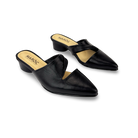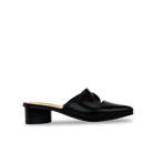 Sandalia con tacón para mujer en 100% cuero vacuno liso, con escote en V en la capellada y tacón de 3.5 cm forrado en cuero con textura amaderada. Diseño elegante de punta fina, fácil de calzar, ideal para combinar comodidad elegancia y estilo en cualquier ocasión.