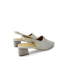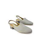 Calzado sueco para mujer elaborado en 100% cuero vacuno con correa trasera de hebilla y tacón forrado de 4 cm en acabado texturizado. Diseño elegante y femenino con capellada microperforada y grabada, perfecto para un look moderno y sofisticado.