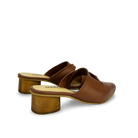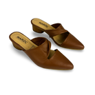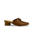 Sandalia con tacón para mujer en 100% cuero vacuno liso, con escote en V en la capellada y tacón de 3.5 cm forrado en cuero con textura amaderada. Diseño elegante de punta fina, fácil de calzar, ideal para combinar comodidad elegancia y estilo en cualquier ocasión.