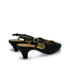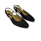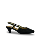 Tacón estilo atemporal con cierre slingback para mujer con diseño elegante y sofisticado. Presenta un aplique decorativo circular en la capellada, tacón de 5 cm recubierto en cuero texturizado y punta estilizada. Elaborado 100% en cuero vacuno grabado con forro de cuero y suela en caucho para mayor comodidad. Fabricado en Colombia.