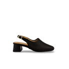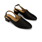 Calzado sueco para mujer elaborado en 100% cuero vacuno con correa trasera de hebilla y tacón forrado de 4 cm en acabado texturizado. Diseño elegante y femenino con capellada microperforada y grabada, perfecto para un look moderno y sofisticado.
