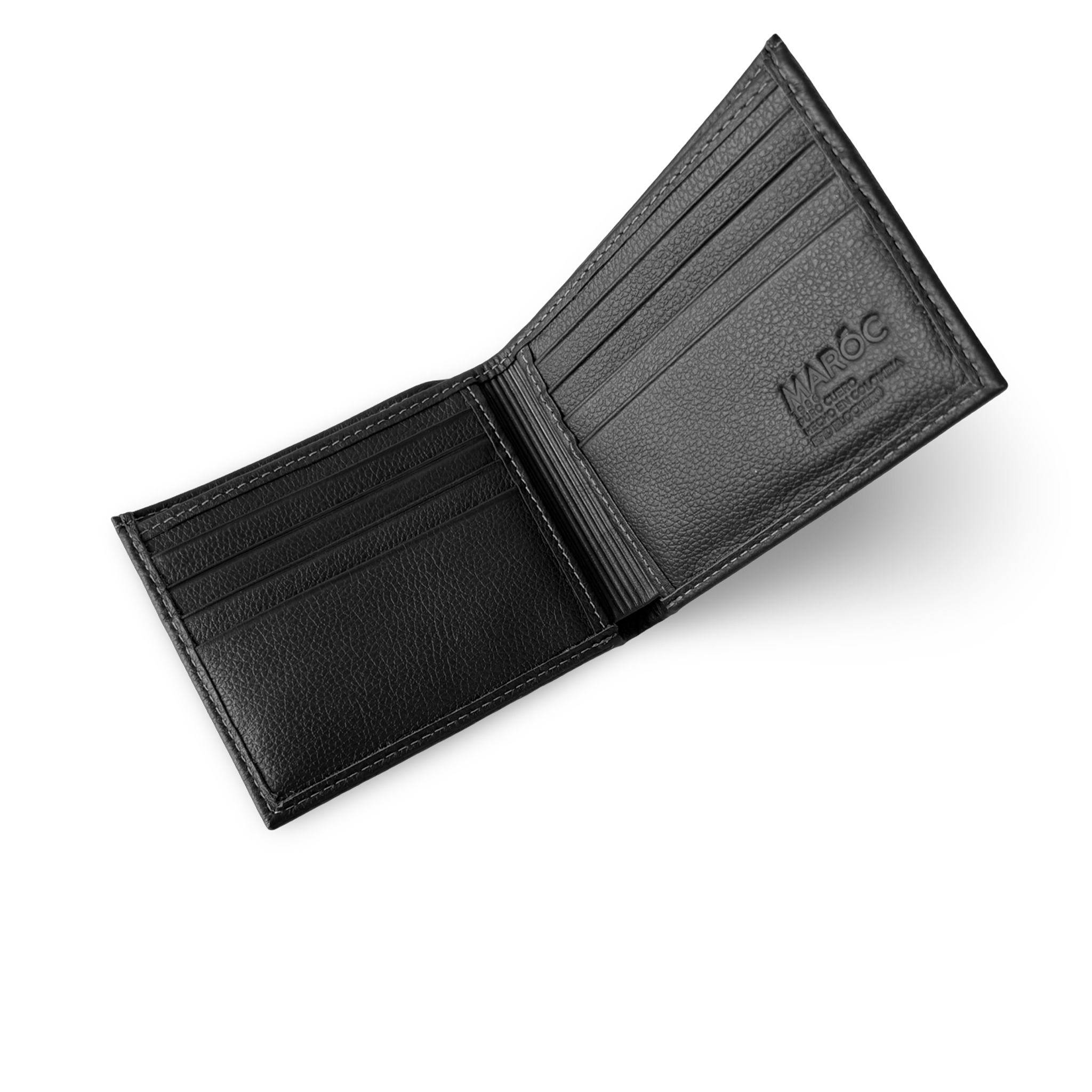 Cuenta con un compartimento principal para billetes, un bolsillo interno con dos divisiones y 10 espacios para tarjetas, ofreciendo una organización práctica sin sacrificar estilo. El logo grabado de la marca Maroc en el lateral le aporta un toque distintivo y sofisticado. Dimensiones Aproximadas: Alto 9cm x Ancho 11cm x Fondo 1.5cm