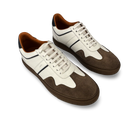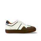 Tenis para hombre tricolor en tonos café, azul y blanco, una propuesta versátil que combina estilo urbano con la calidad artesanal colombiana. Fabricados en 100% cuero vacuno con acabados grabados, lisos y en gamuza, aportan textura, durabilidad y un diseño moderno que se adapta a múltiples looks.