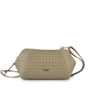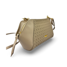 Bolso manos libres tipo fiesta para mujer elaborado en cuero vacuno grabado, con aplique metálico dorado del logo MAROC en la parte frontal que aporta elegancia y distinción.