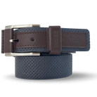 - Tipo: Cinturón para hombre Bicolor café y azul con detalle repujado del Logo Maroc en la hebilla de ajuste y al finalizar la correa
