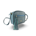 Este práctico bolso manos libres está elaborado en 100% cuero vacuno liso y repujado, con herrajes en zamak que aportan resistencia y un acabado sofisticado. De diseño compacto con dimensiones aproximadas (17 x 17 x 10 cm), cuenta con bolsillo frontal con cremallera y borla decorativa, bolsillo interno tipo monedero y bolsillo trasero con cierre de cremallera, ideales para llevar tus objetos personales de forma segura. Su correa ajustable con corredera permite usarlo cómodamente cruzado, perfecto para quienes buscan comodidad, estilo y funcionalidad en un accesorio pequeño y versátil. Hecho en Colombia.