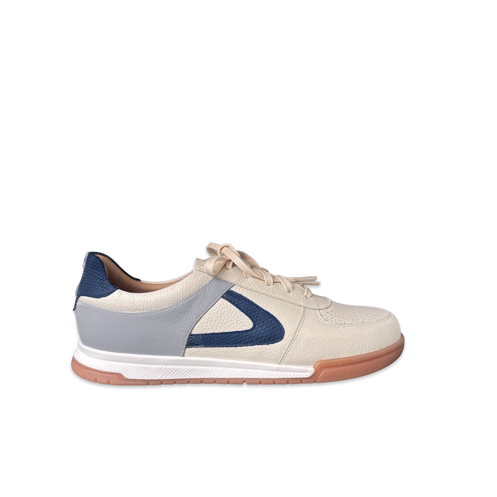 Tenis para mujer en cuero vacuno combinando texturas lisas y grabadas, con suela bicolor de caucho de 3 cm que aporta comodidad y estilo. Su diseño de punta redonda y cordones encerados ofrece un ajuste perfecto y versátil para looks casuales y modernos. Hechos en Colombia con materiales de alta calidad que garantizan resistencia y durabilidad.