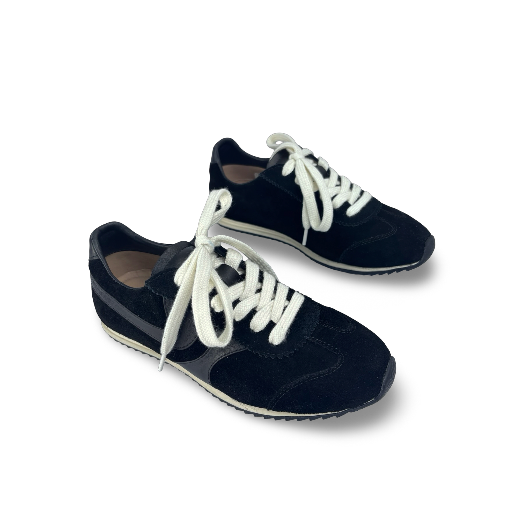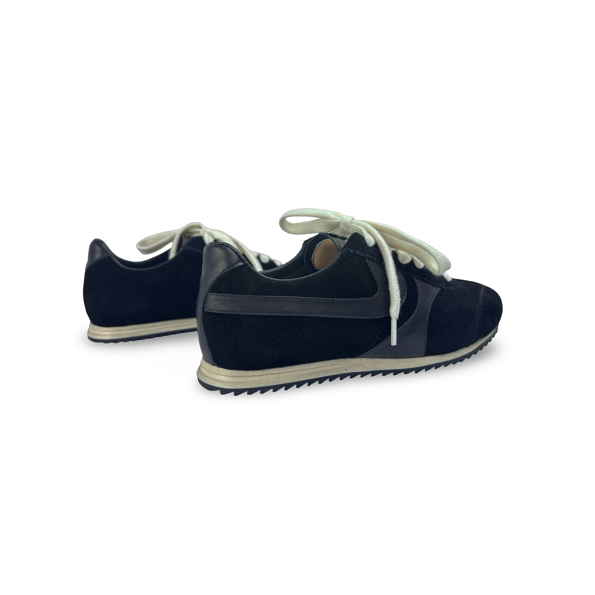 Tenis para mujer de estilo clásico retro, elaborados en cuero tipo gamuza que aporta textura y distinción. Su suela antideslizante de 1.5 cm brinda comodidad y seguridad en cada paso, mientras el cordón en algodón asegura un ajuste firme. Un diseño atemporal que combina elegancia y confort, ideal para complementar tus looks casuales con un aire vintage.