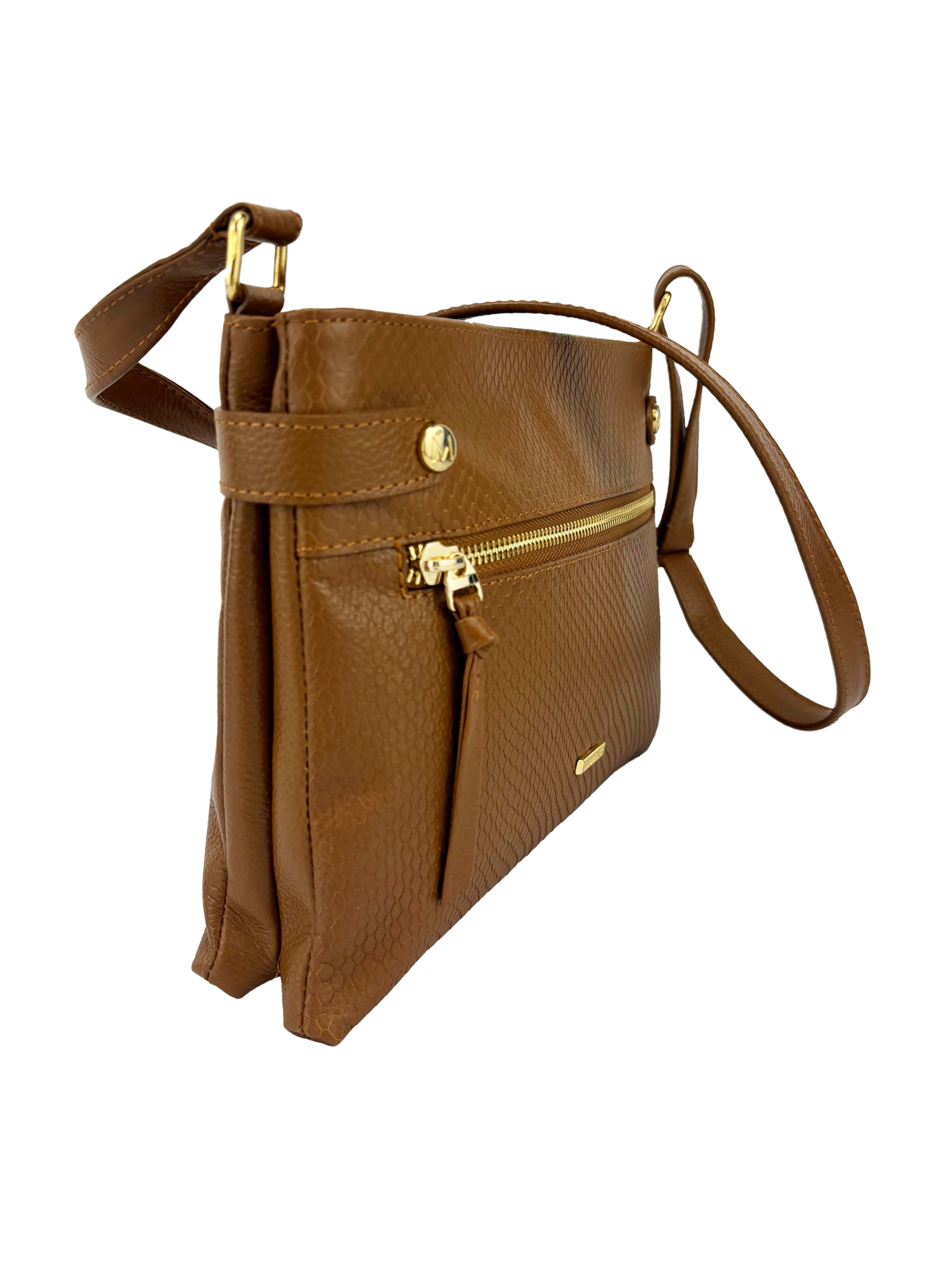 Bolso manos libres pequeño con doble compartimiento y dos cierres independiente.