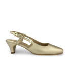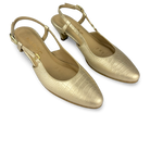 Tacón estilo atemporal con cierre slingback para mujer con diseño elegante y sofisticado. Presenta un aplique decorativo circular en la capellada, tacón de 5 cm recubierto en cuero texturizado y punta estilizada. Elaborado 100% en cuero vacuno grabado con forro de cuero y suela en caucho para mayor comodidad. Fabricado en Colombia.