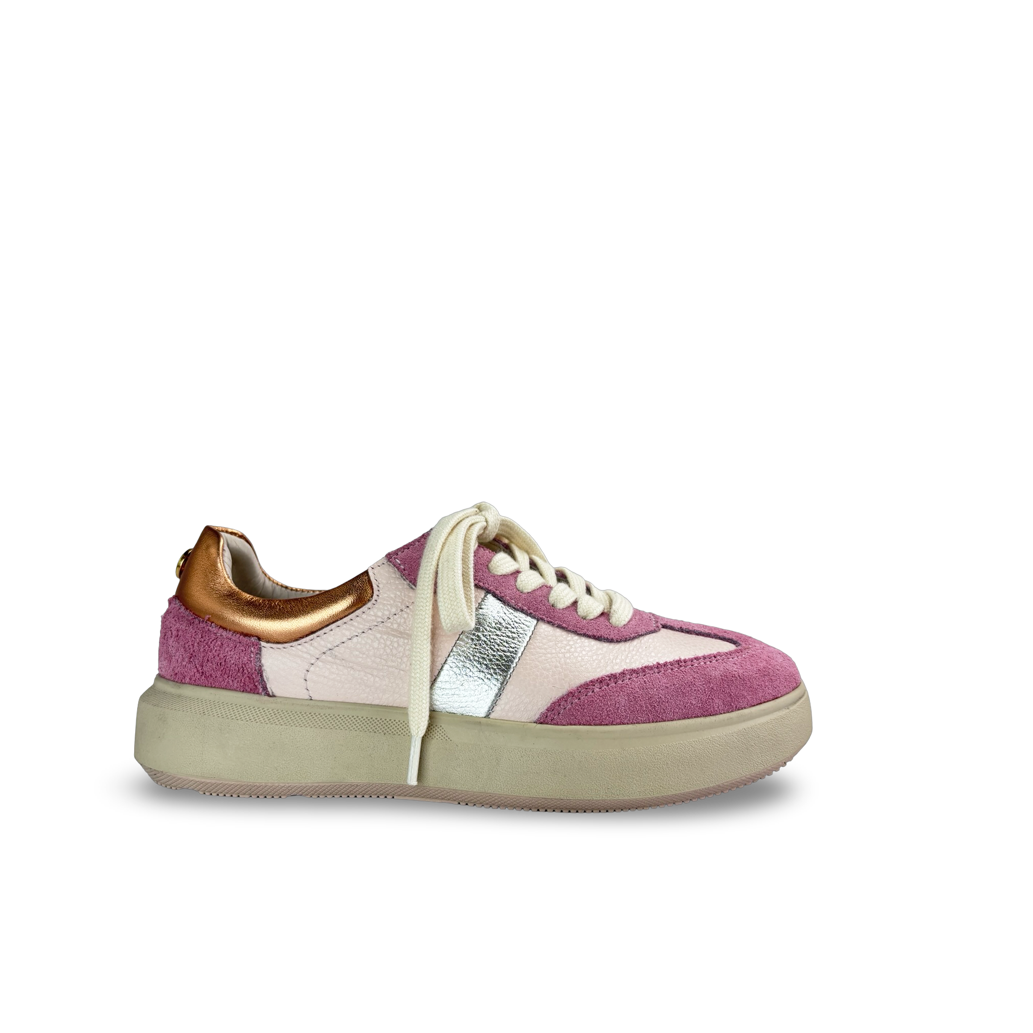 Material capellada: 100% cuero vacuno gamuza, metalizado y grabado