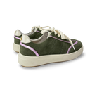 Los tenis para mujer estilo retro de Maroc combinan el diseño clásico con la sofisticación contemporánea. Elaborados en 100% cuero vacuno en gamuza y acabado metalizado, ofrecen una textura única y un contraste visual que resalta en cualquier look. Su aplique metálico dorado con el logo de la marca en la parte trasera añade un toque de distinción, mientras que la suela de caucho de 3.5 cm aproximadamente brinda una elevación sutil y una pisada cómoda y segura. Con punta redonda y cordones en algodón, estos tenis son perfectos para un estilo casual chic con esencia urbana.