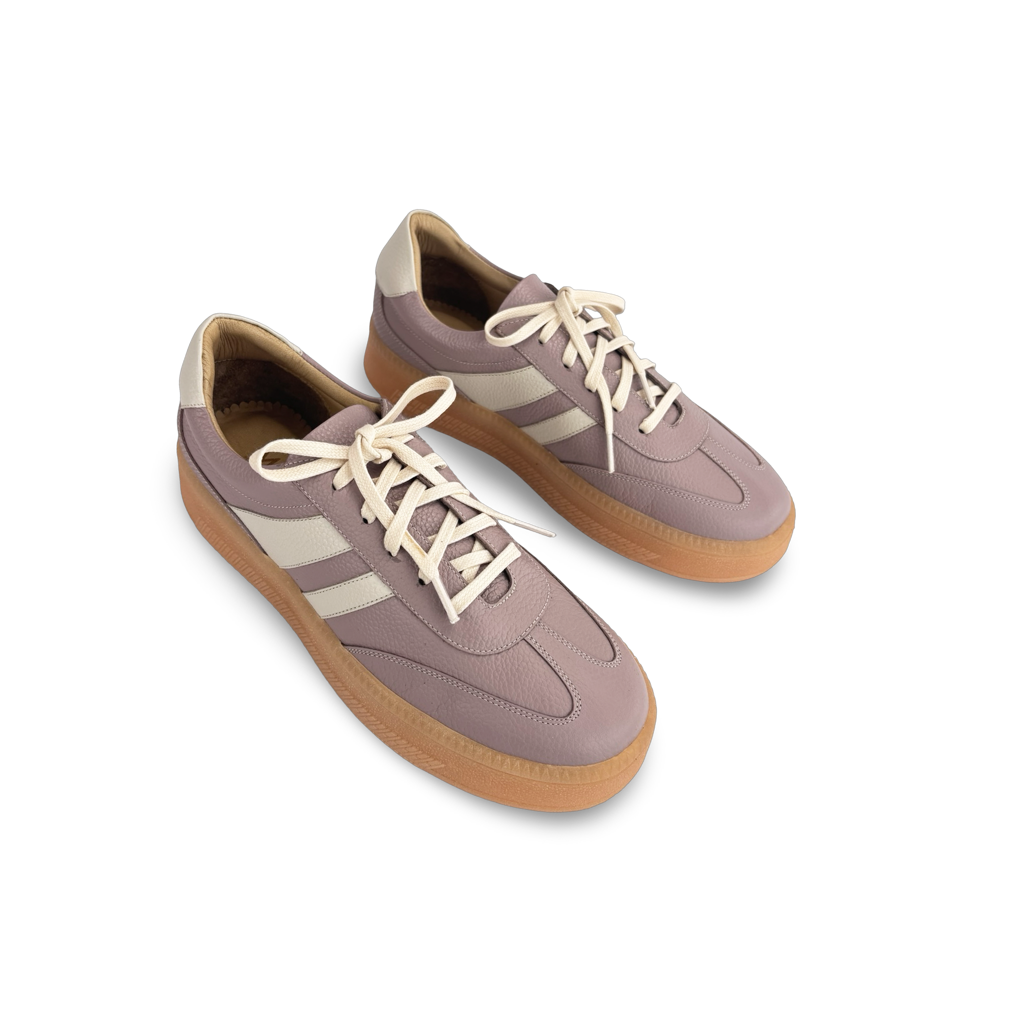 Tenis para mujer estilo samba elaborados en 100% cuero vacuno grabado, con suela de caucho de 3 cm que brinda comodidad y resistencia. Diseño clásico con punta redonda, cierre en cordón de cuero y detalles elegantes que realzan cualquier look casual o urbano. Hechos en Colombia con forro en cuero para mayor confort y durabilidad.