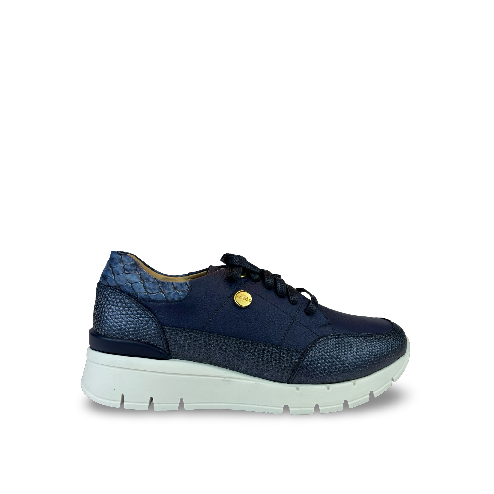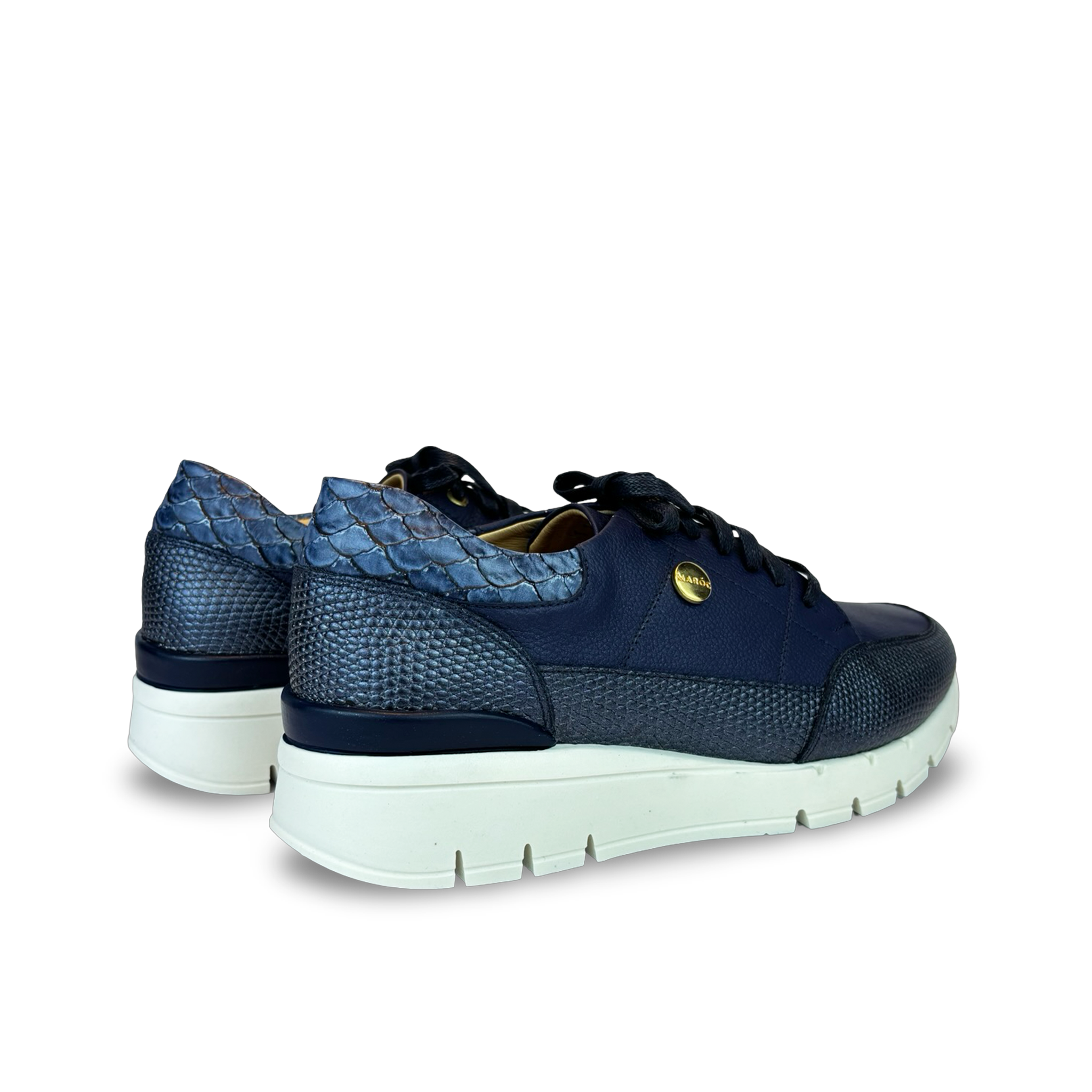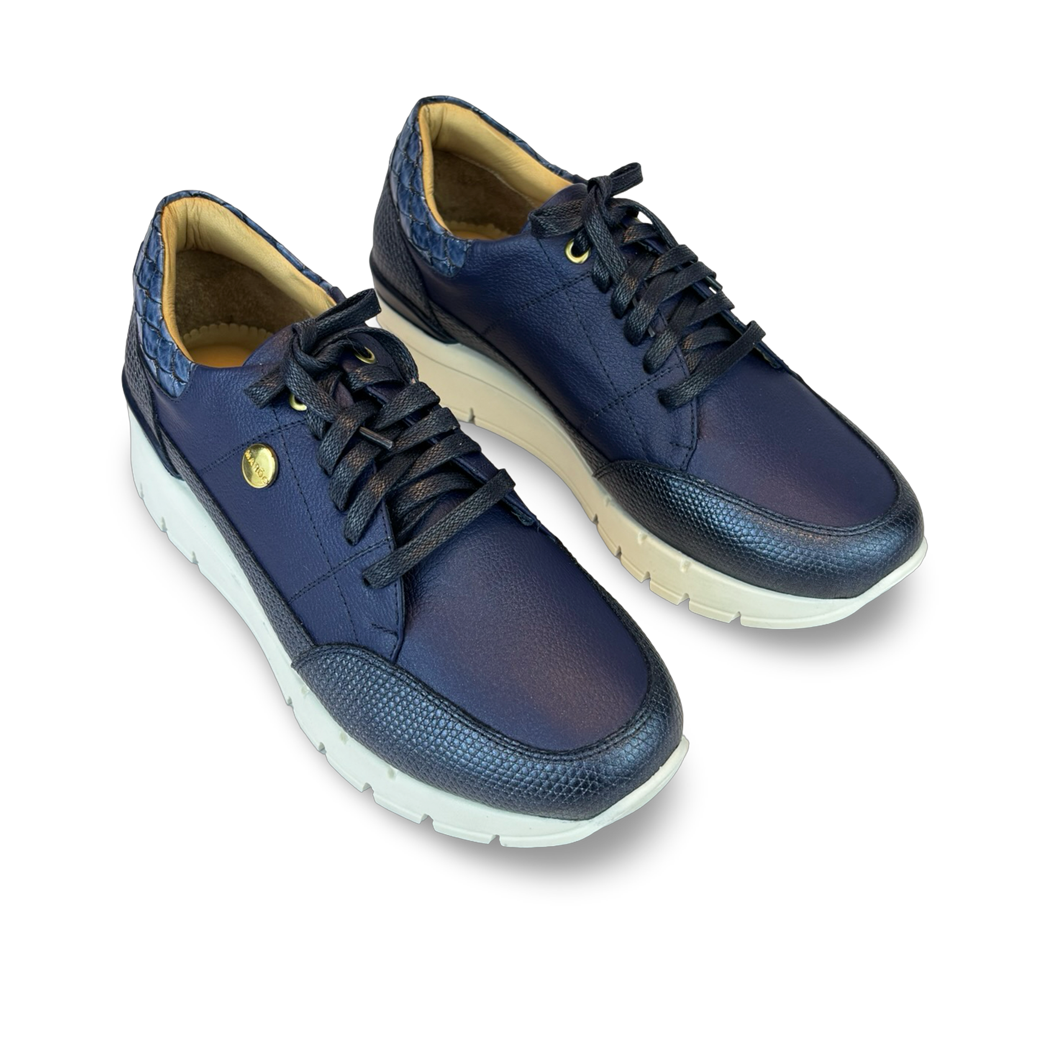 Los tenis semiformales para mujer Maroc combinan sofisticación y comodidad en un diseño versátil ideal para el día a día o looks más elegantes. Fabricados en 100% cuero vacuno grabado y metalizado, destacan por su acabado brillante y el aplique metálico dorado con el logo de la marca en el lateral. Su suela de caucho de 3 cm brinda confort y tracción, mientras que el forro en cuero asegura frescura y durabilidad. Con cordones encerados y punta semiredonda, son el equilibrio perfecto entre estilo y funcionalidad. Hechos artesanalmente en Colombia.