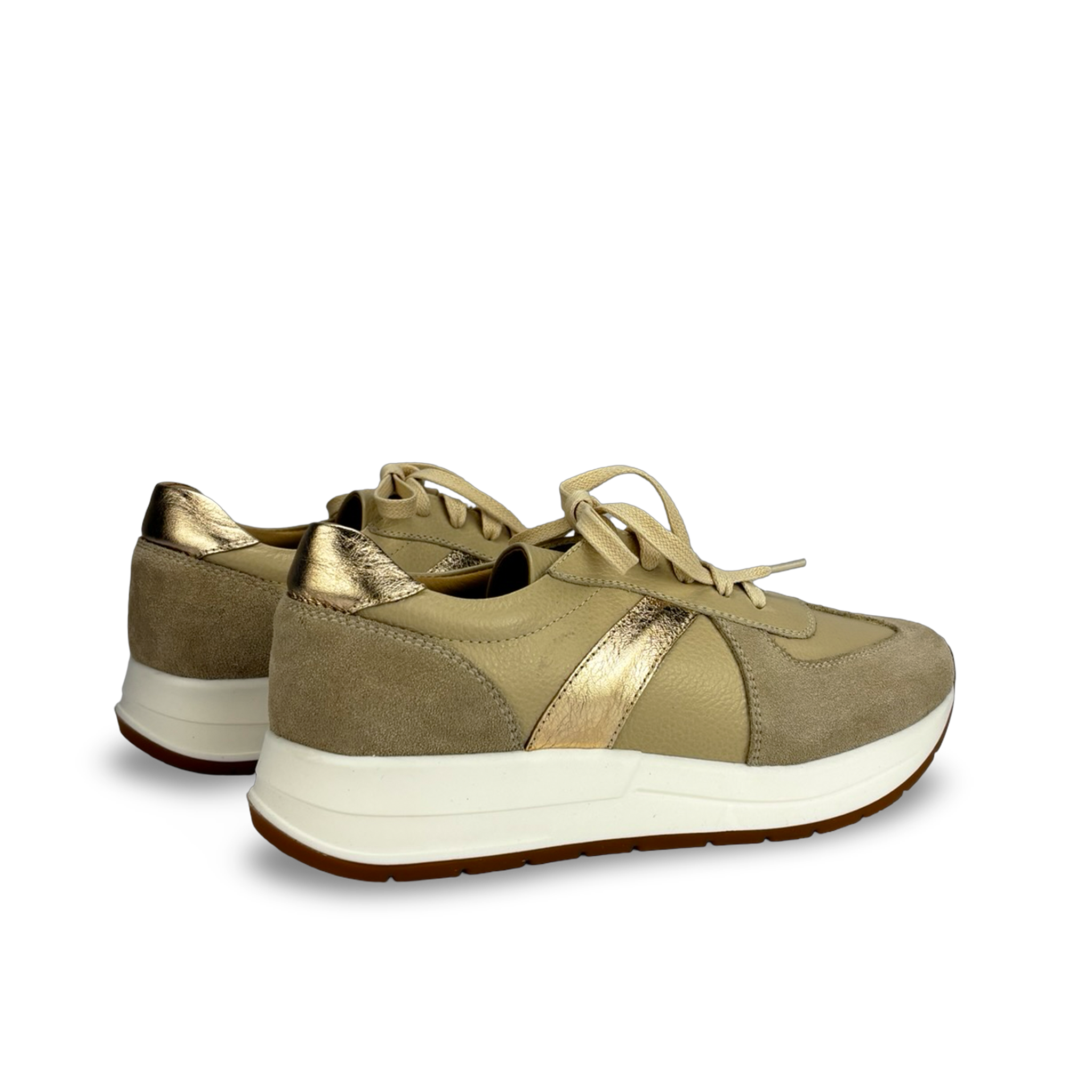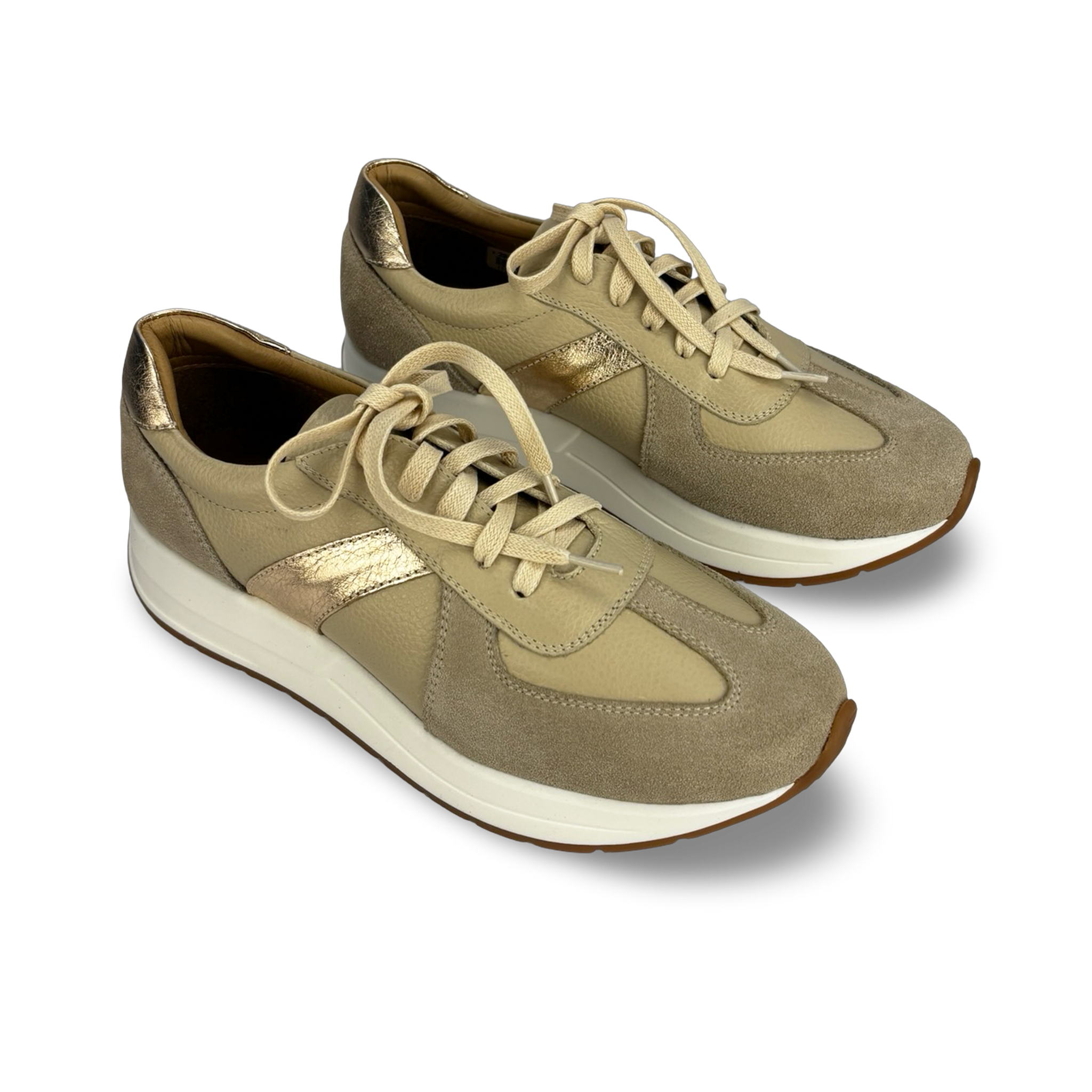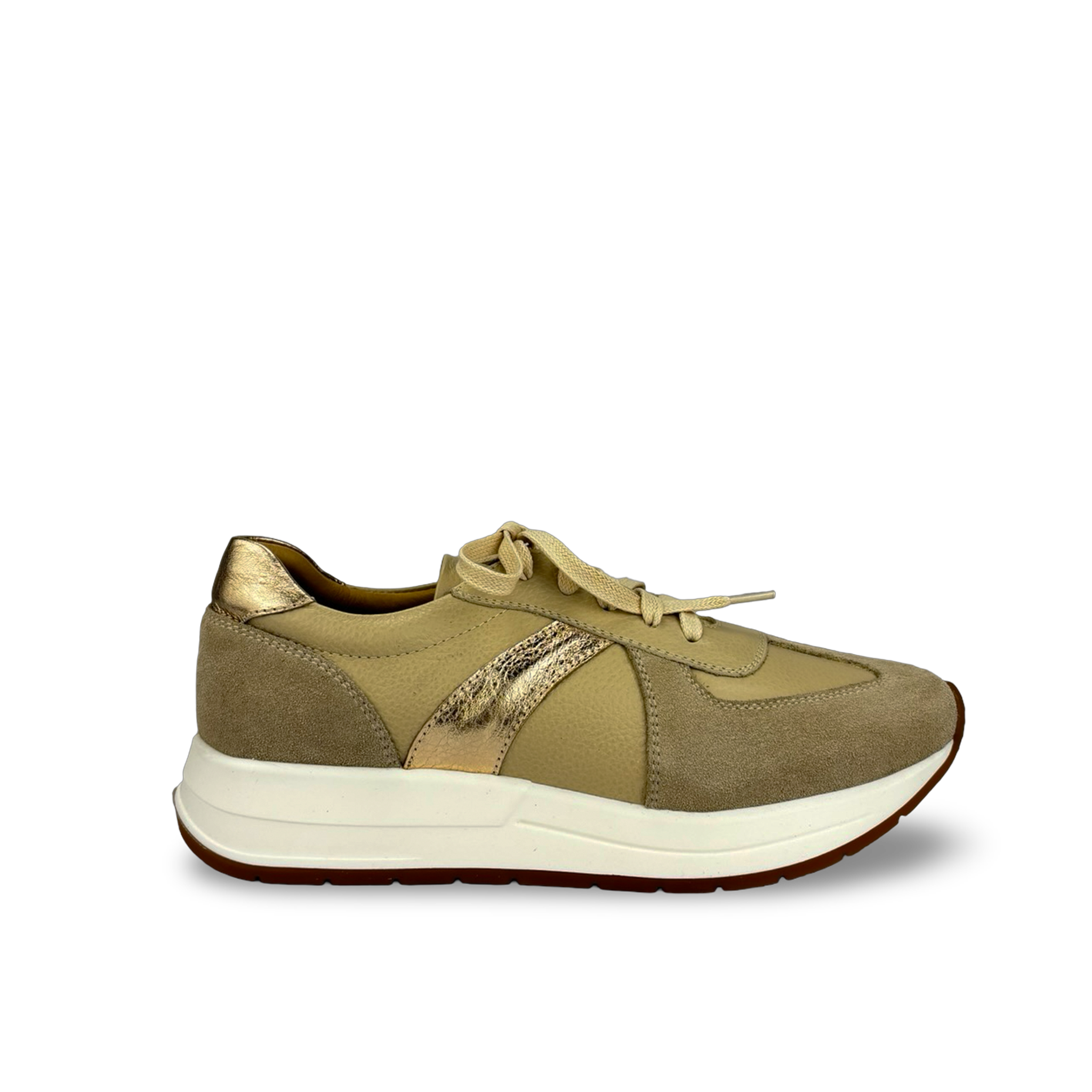 Tenis para mujer de estilo moderno y versátil, perfectos para un look casual con un toque semiformal. Elaborados en 100% cuero vacuno liso, grabado y metalizado, destacan por su mezcla de texturas y acabado brillante que eleva cualquier outfit. Su suela de caucho antideslizante de 3 cm brinda comodidad y estabilidad durante todo el día, mientras que el cordón encerado añade un detalle sofisticado. Dimensiones: Suela 3 cm de alto aproximadamente