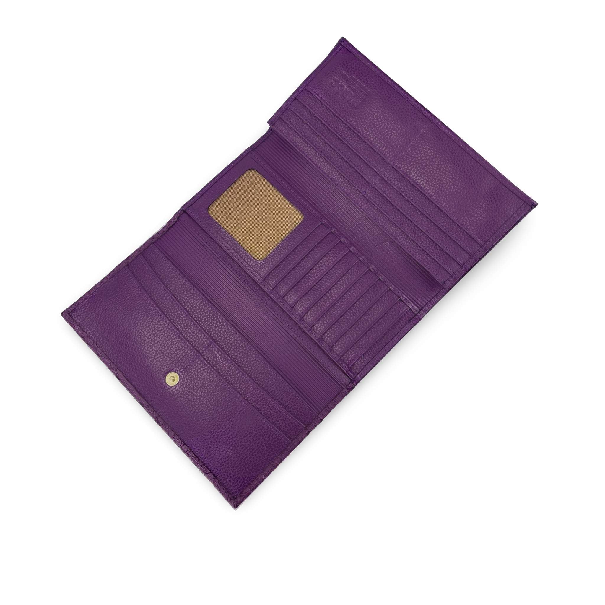 - Compartimentos: Billetera cuatro cuerpos con cinco espacios para billetes, veintiún espacios para tarjetas 1 espacio para guardar fotos y un compartimento en la parte externa de atrás con cierre de cremallera ideal para guardar monedas
