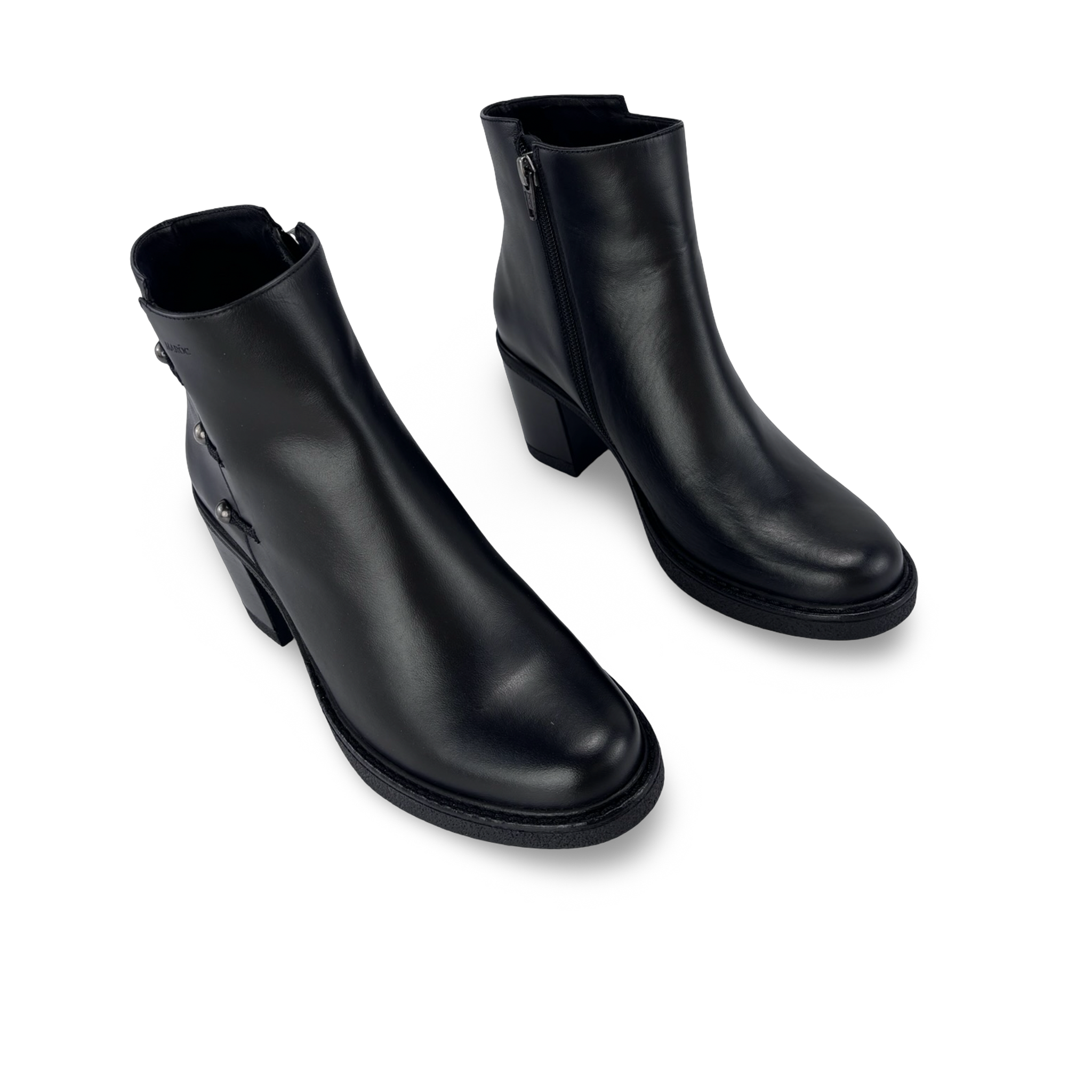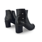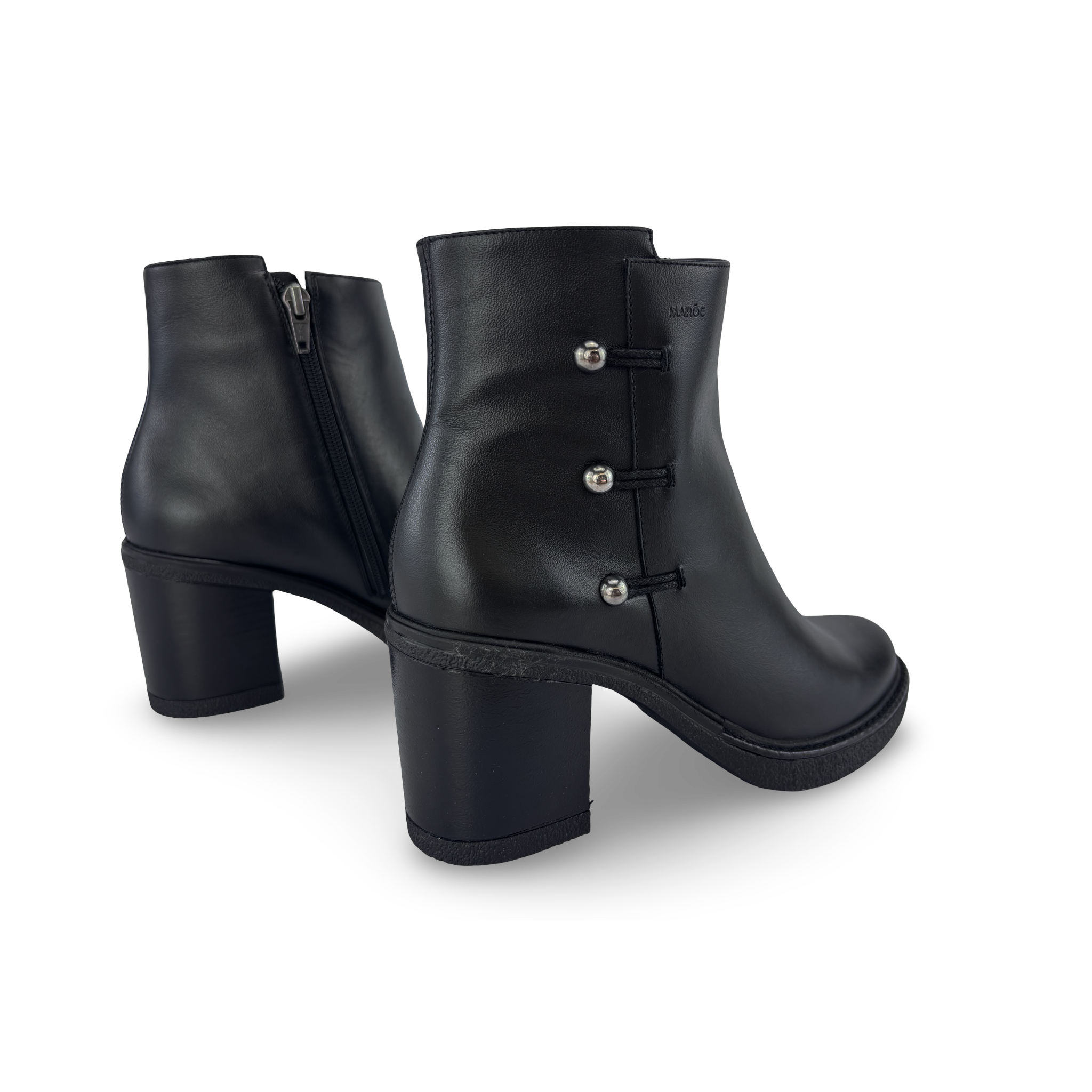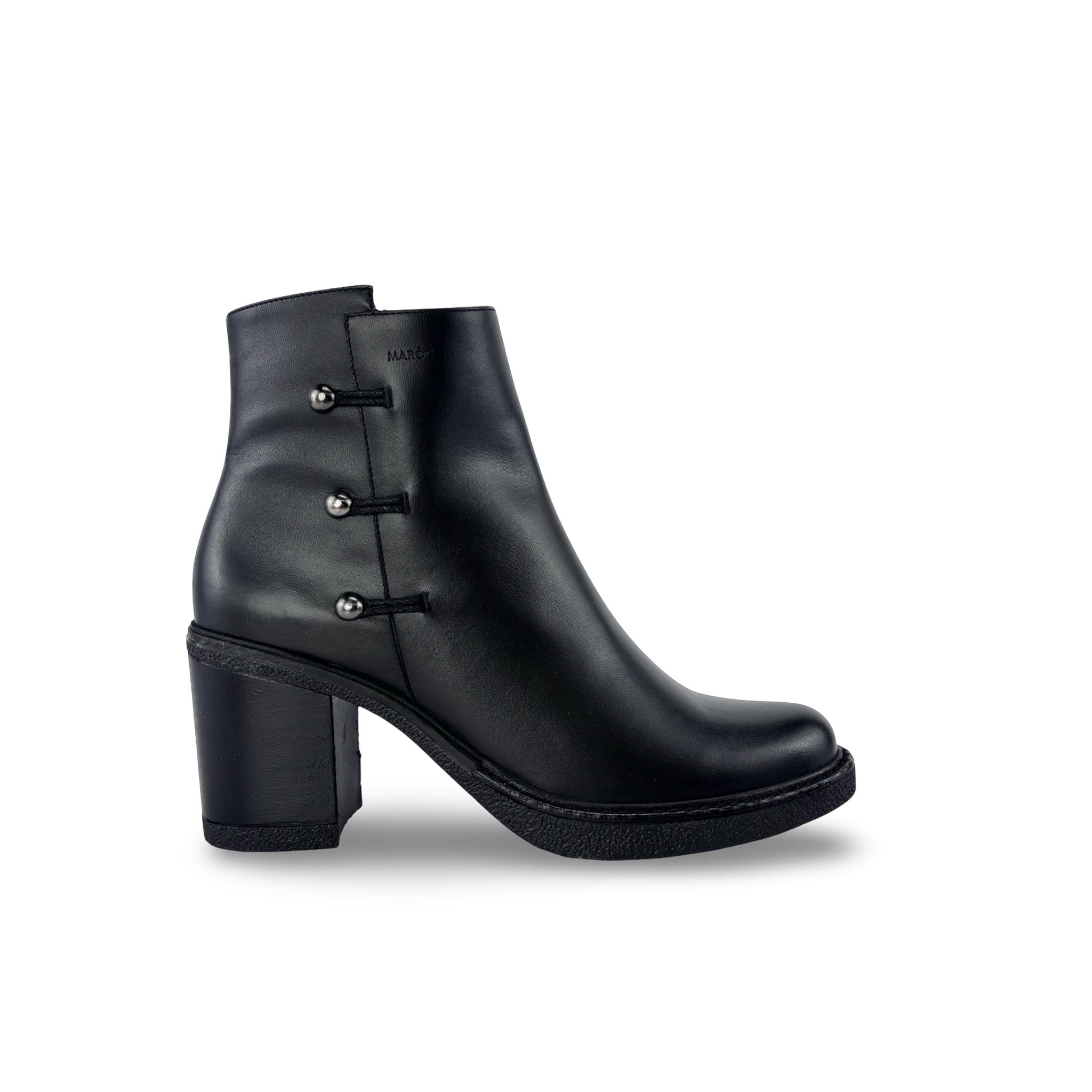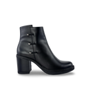 Botín para mujer de estilo contemporáneo y sofisticado, con botones decorativos y elásticos laterales que realzan su diseño y facilitan el calce. Fabricado en cuero 100% vacuno liso con acabado envejecido, destaca por su carácter y textura única. Su tacón de 6.5 cm ofrece una altura elegante y cómoda, mientras que las costuras reforzadas en la suela garantizan mayor durabilidad. Ideal para acompañar looks ejecutivos o casuales con un toque moderno y refinado.