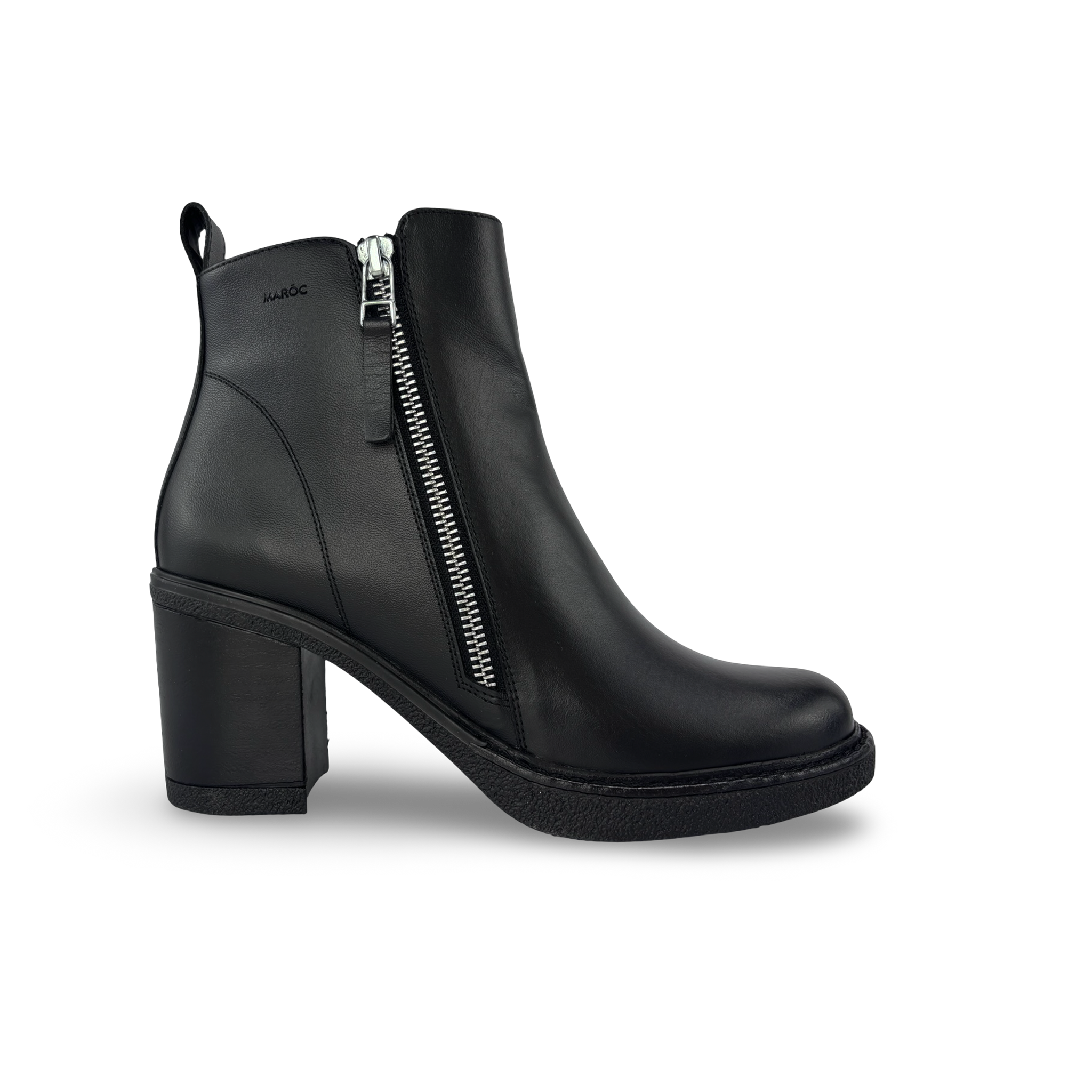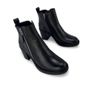 Botín para mujer de estilo elegante y ejecutivo, ideal para elevar tus looks diarios con un toque de sofisticación. Confeccionado en cuero 100% vacuno liso, destaca por su diseño moderno y su tacón de 6.5 cm, que brinda altura y comodidad. Su punta semiredonda y cremalleras laterales ofrecen un calce práctico y seguro, mientras que su suela en caucho garantiza una pisada firme y antideslizante. Perfecto para combinar con atuendos formales o casuales con un toque refinado.