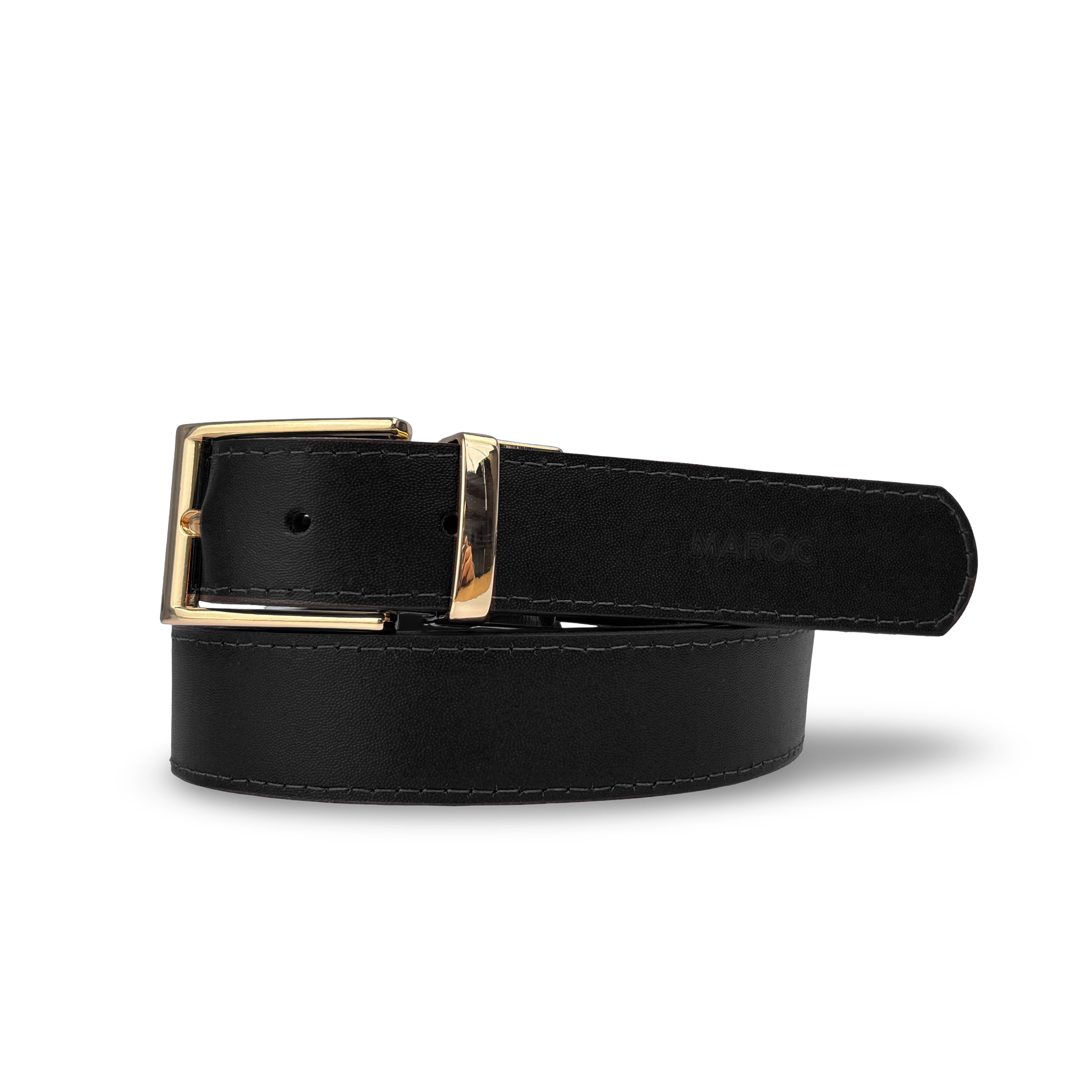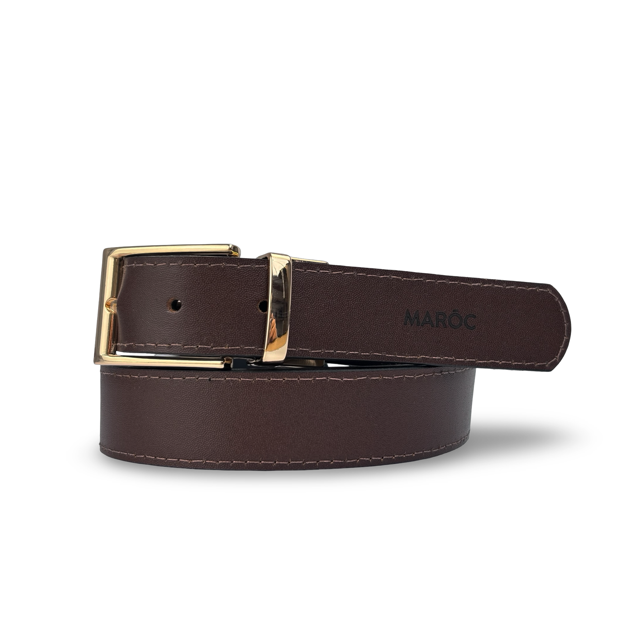 Un diseño elegante y funcional que te permite dos estilos en una sola pieza. Puedes usarlo en tono miel o en tono negro, ambos en cuero liso grabado, con delicado detalle de costura en el borde y logo Maróc en la punta de la correa. Incluye hebilla reversible rectangular que aporta un acabado clásico y versátil. Fabricado en Colombia en cuero vacuno liso con herrajes resistentes. Grosor aprox.: 2.5 cm.
