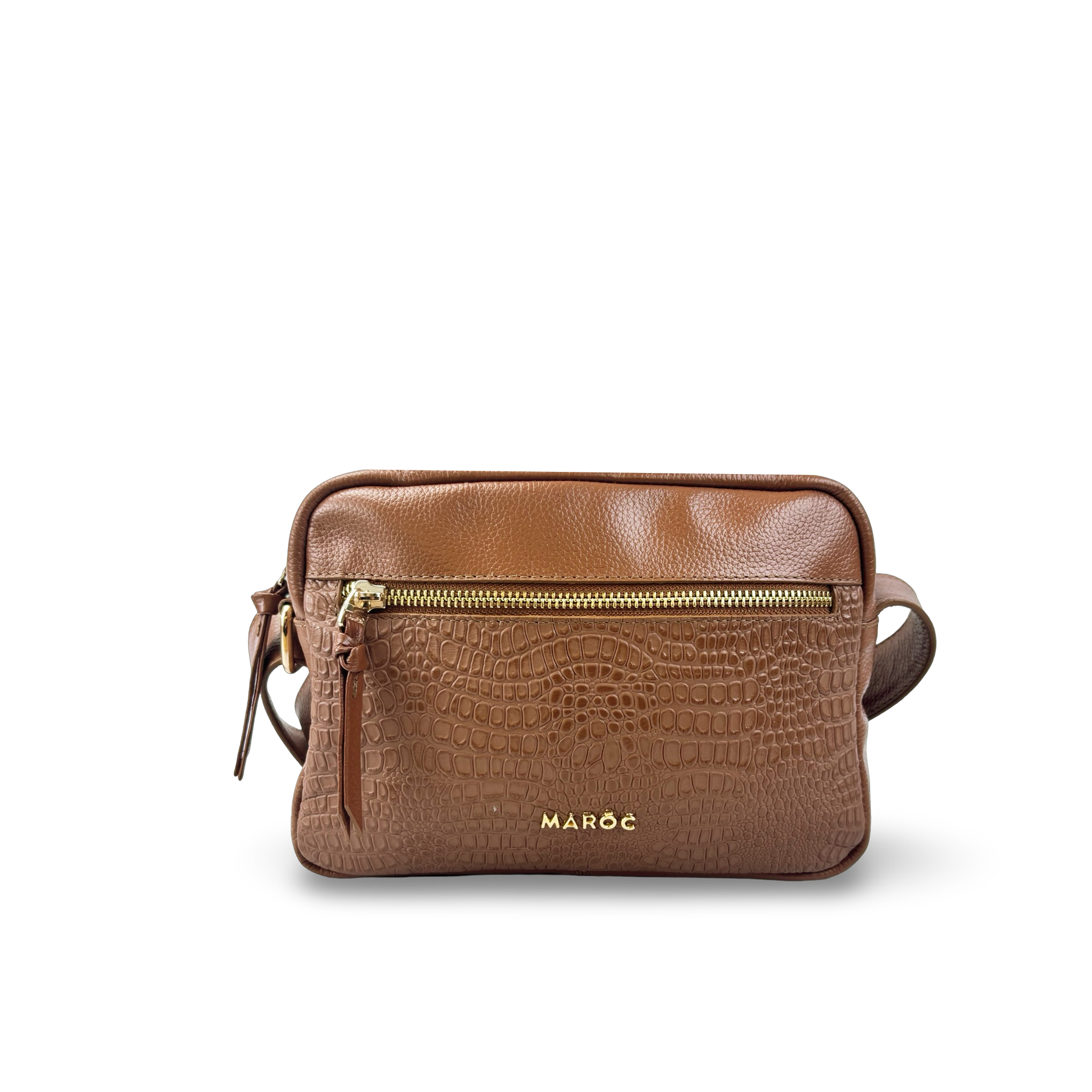 Complementa tus looks con el bolso manos libres Maroc, una pieza moderna y sofisticada elaborada en 100% cuero vacuno grabado, metalizado y liso. Su diseño compacto con aplique metálico dorado frontal refleja elegancia y estilo urbano. Cuenta con varios compartimentos para mantener todo en orden: un bolsillo interno con cremallera, otro abierto para celular o accesorios y un bolsillo externo funcional. Incluye correa ancha ajustable y portallaves interno con mosquetón, ideal para llevarlo cruzado o al hombro. Dimensiones aproximadas: Alto 16 cm x Ancho 23 cm x Fondo 9 cm. Hecho artesanalmente en Colombia con herrajes de alta calidad.