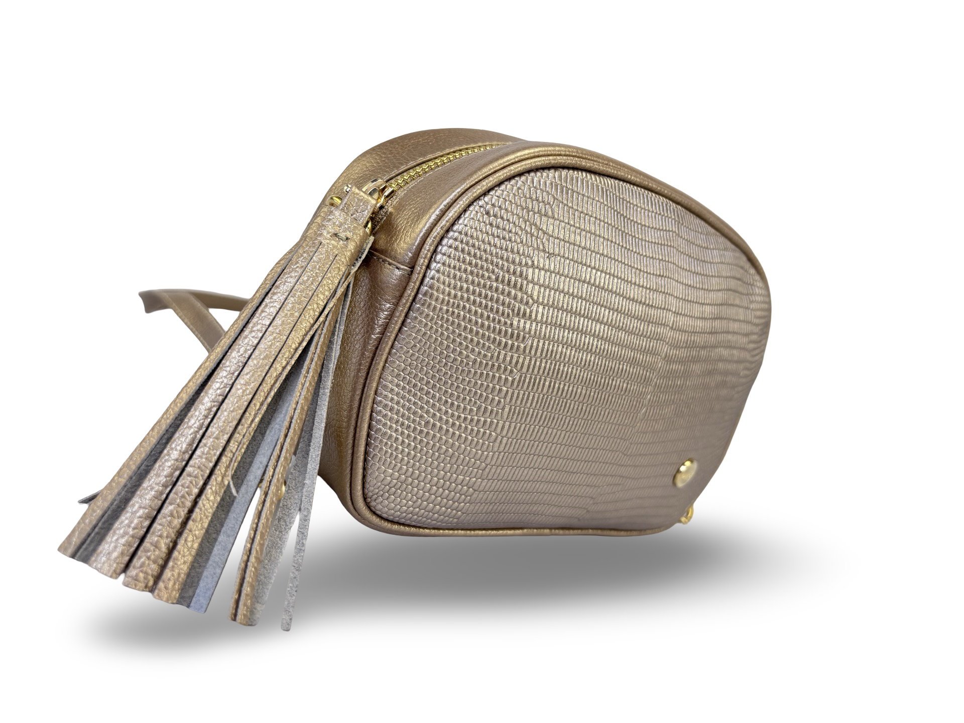 - Compartimentos: bolsillo interno tipo monedero con cremallera slider tipo borla en cuero y bolsillo trasero con cierre de cremallera,