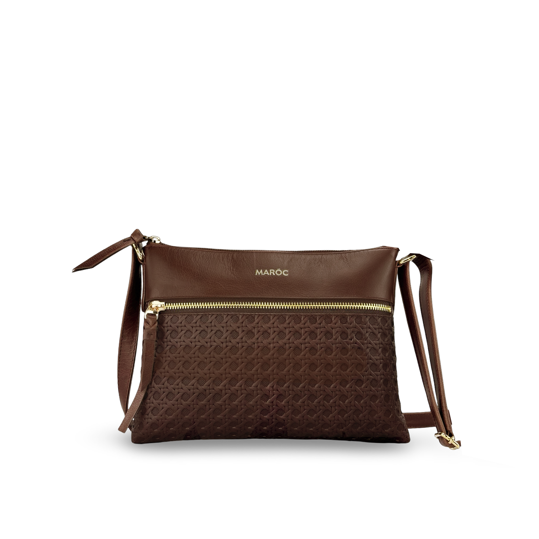 El bolso manos libres para mujer de Maroc combina elegancia y versatilidad en una pieza única. Confeccionado en 100% cuero vacuno grabado, liso y metalizado, este accesorio destaca por su aplique metálico frontal grabado con el sello distintivo de la marca.