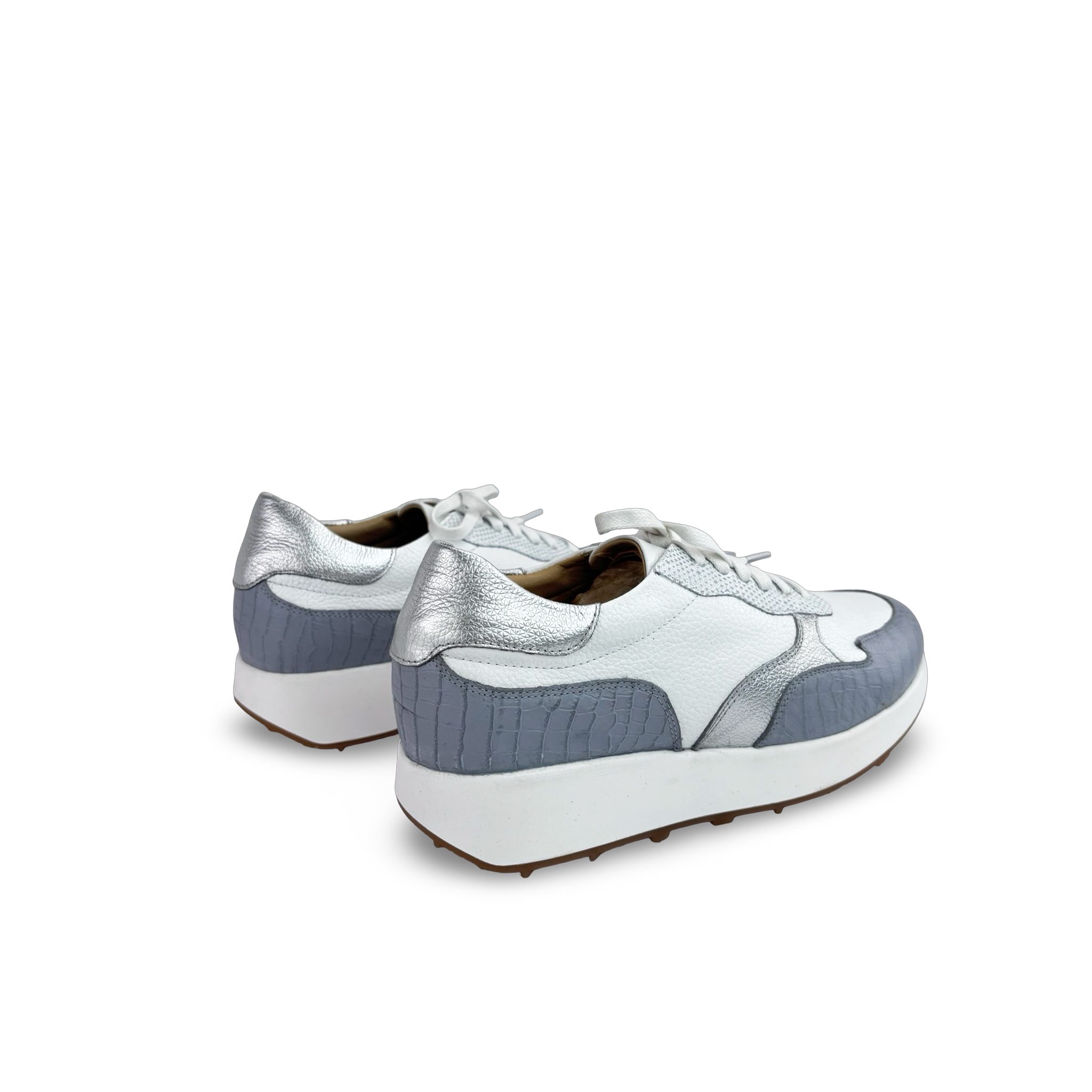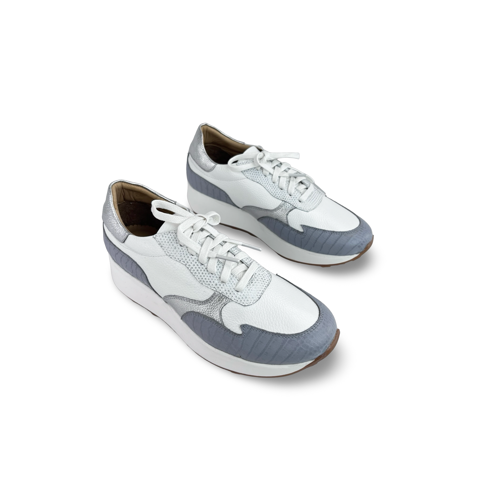 Tenis versátiles y cómodos están elaborados en 100% cuero vacuno liso, grabado y metalizado, con forro interno en cuero que garantiza durabilidad y confort. Su suela de caucho de 4 cm proporciona amortiguación y soporte en cada paso, mientras que la horma normal redonda asegura un calce perfecto. Con cordones de algodón, combinan estilo clásico y funcionalidad. Hechos en Colombia, ideales para un look casual, urbano y de alta calidad.