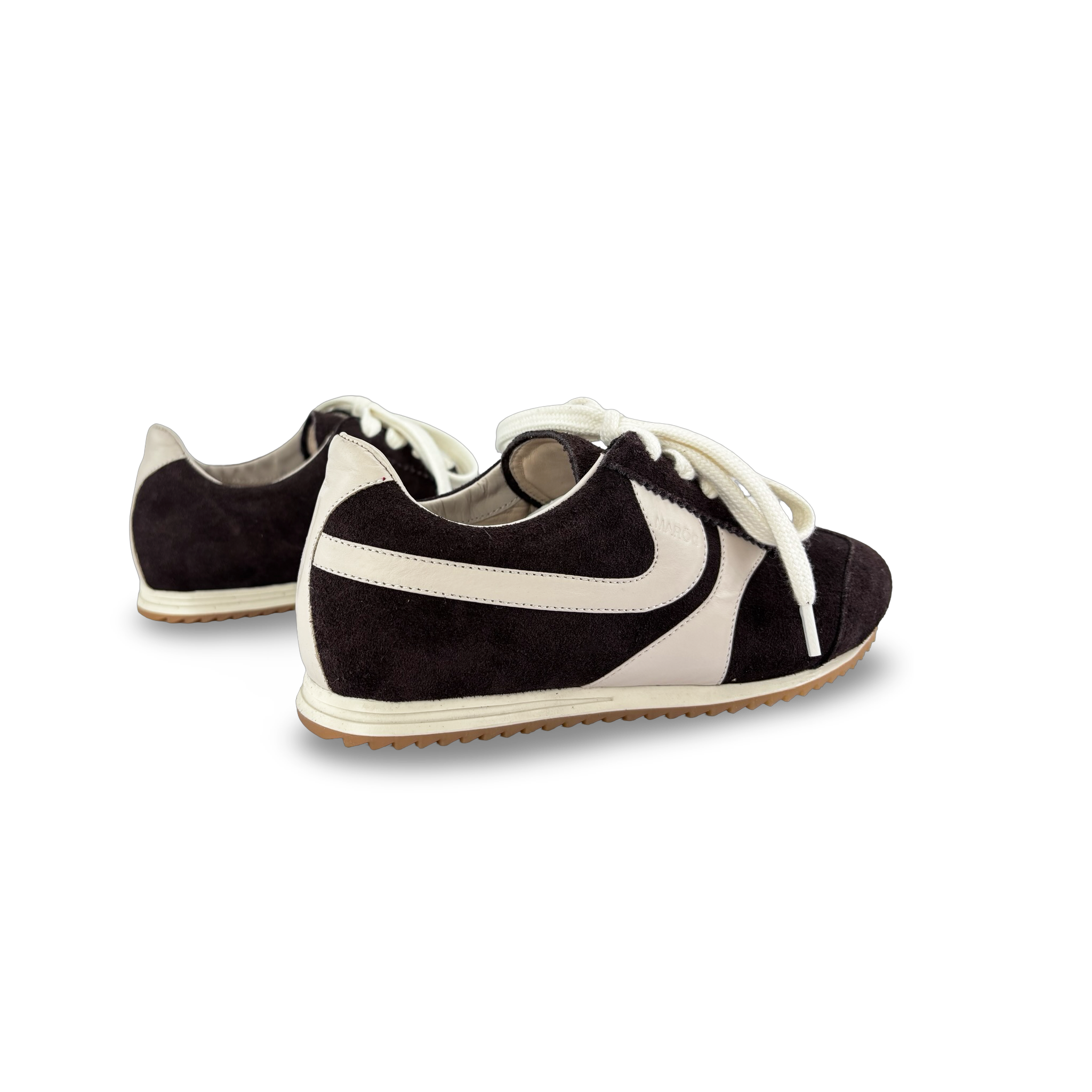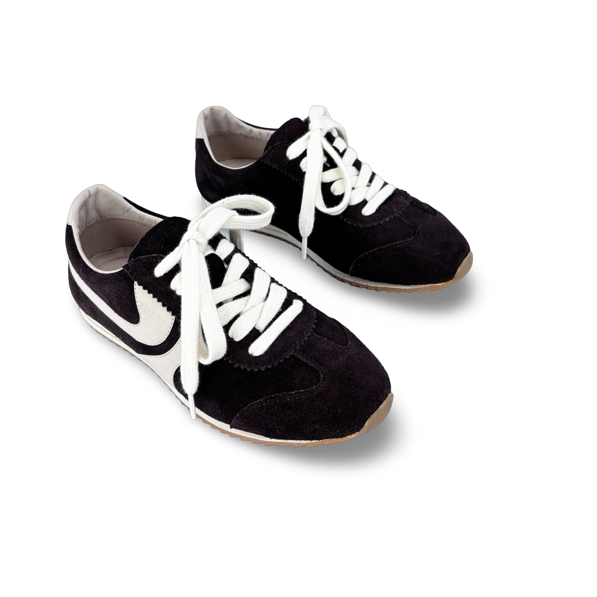 Tenis para mujer de estilo clásico retro, elaborados en cuero tipo gamuza que aporta textura y distinción. Su suela antideslizante de 1.5 cm brinda comodidad y seguridad en cada paso, mientras el cordón en algodón asegura un ajuste firme. Un diseño atemporal que combina elegancia y confort, ideal para complementar tus looks casuales con un aire vintage.